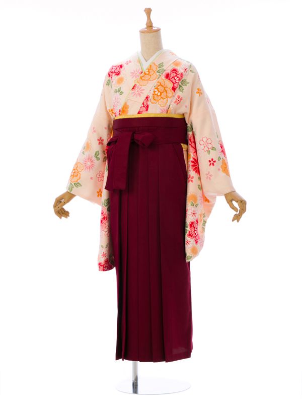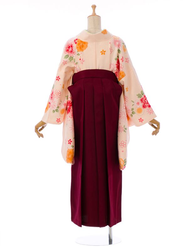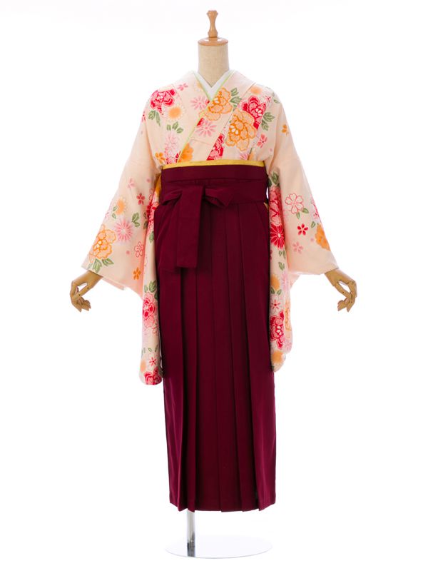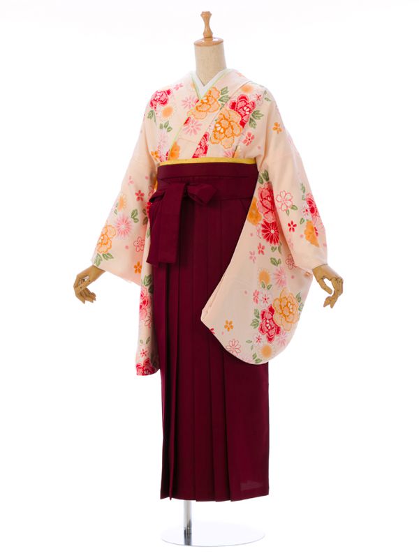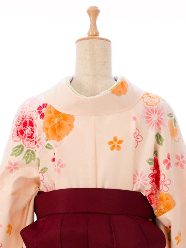 ■着物:ピンクベージュ 牡丹 桜菊■袴:えんじ袴