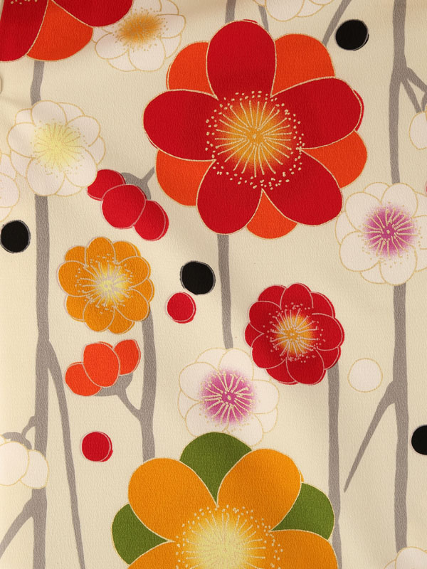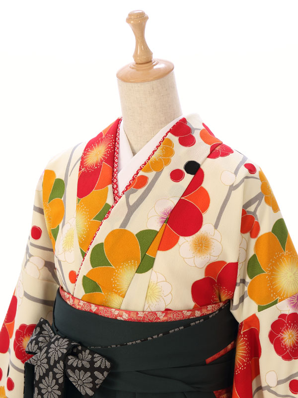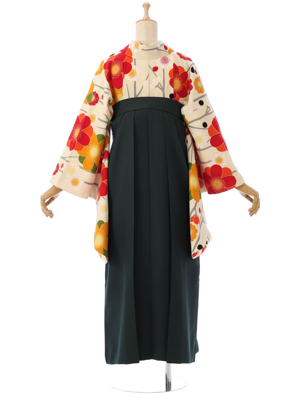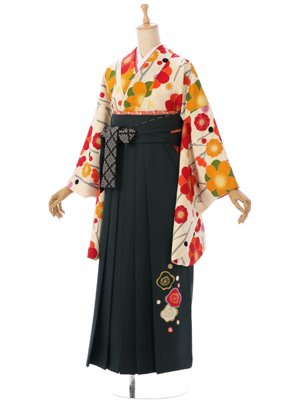 【色/柄】着物:クリーム 梅 袴:グリーン袴 梅刺繍
