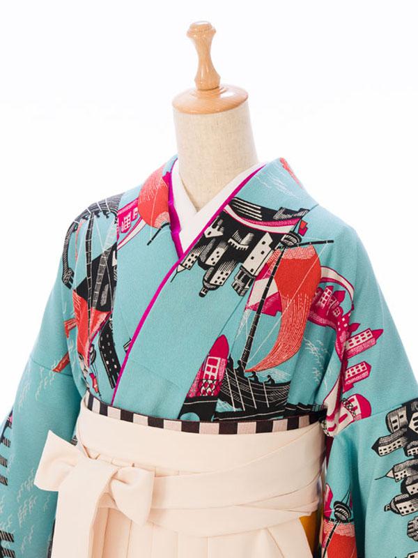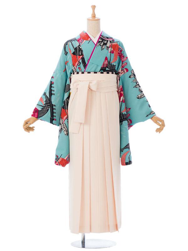 卒業袴|水色系|R0118|対応身長:158-163cm|サイズ:7-13号|岡重