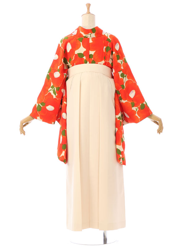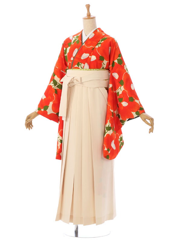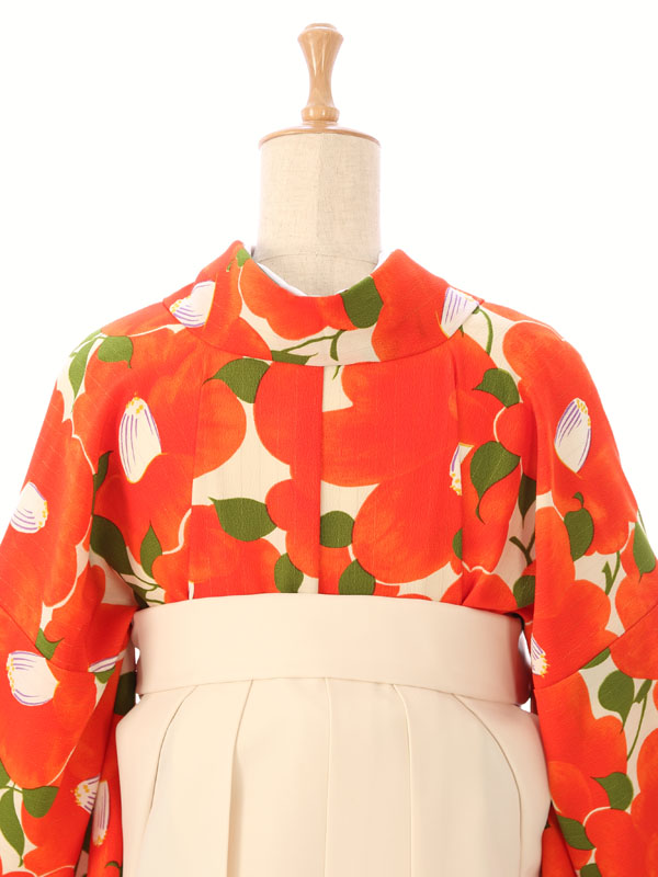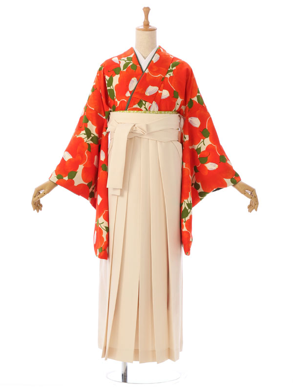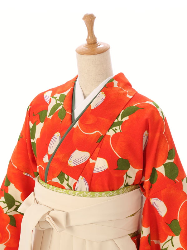 オレンジ椿柄の卒業式袴フルセットR098_H157-25-5