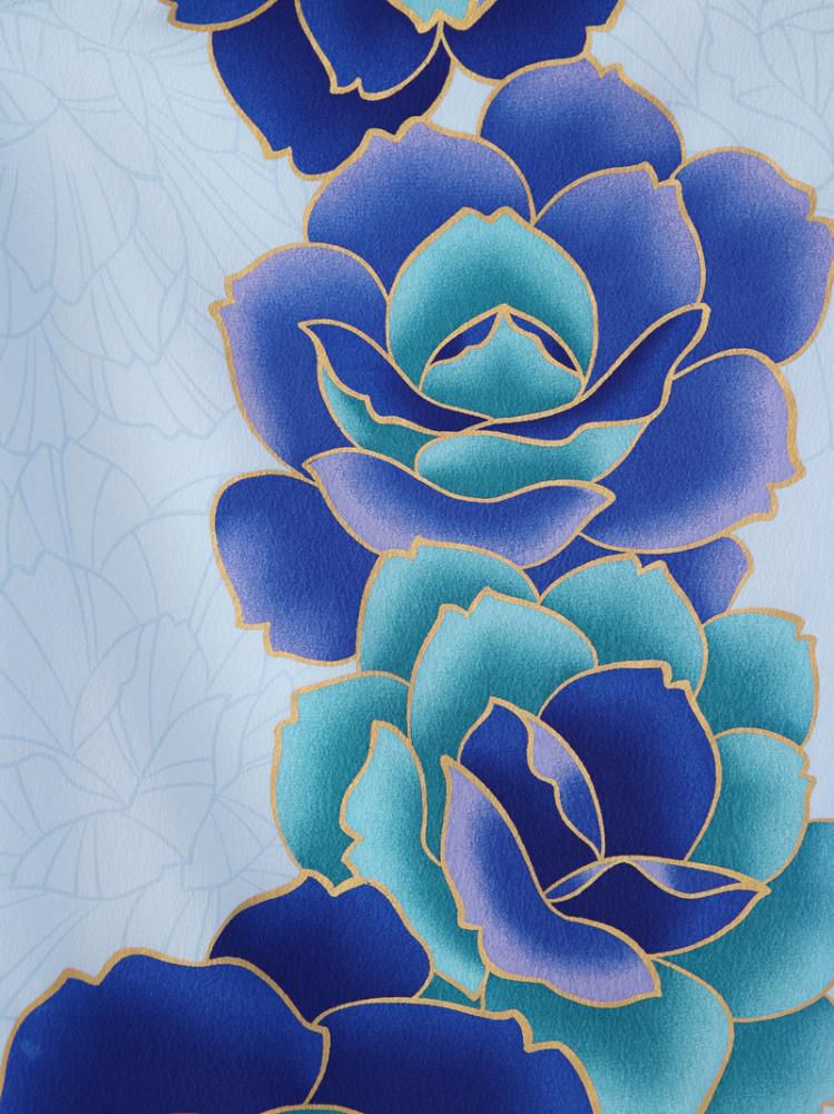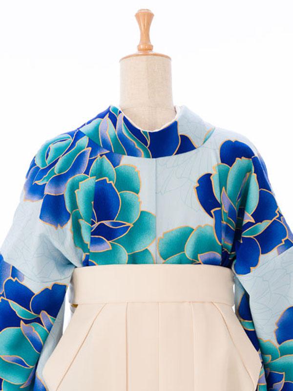 着物:ブルー濃淡地 薔薇 袴:クリーム袴