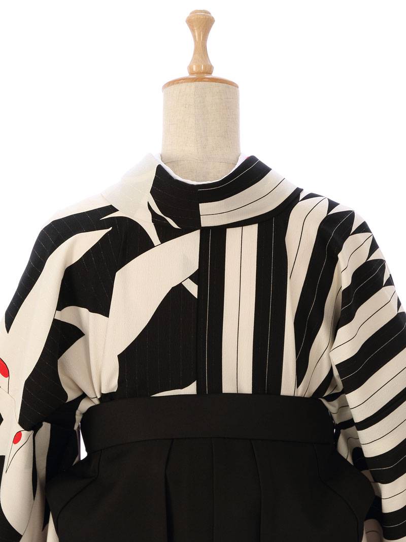 着物:黒×白 鶴×矢絣
