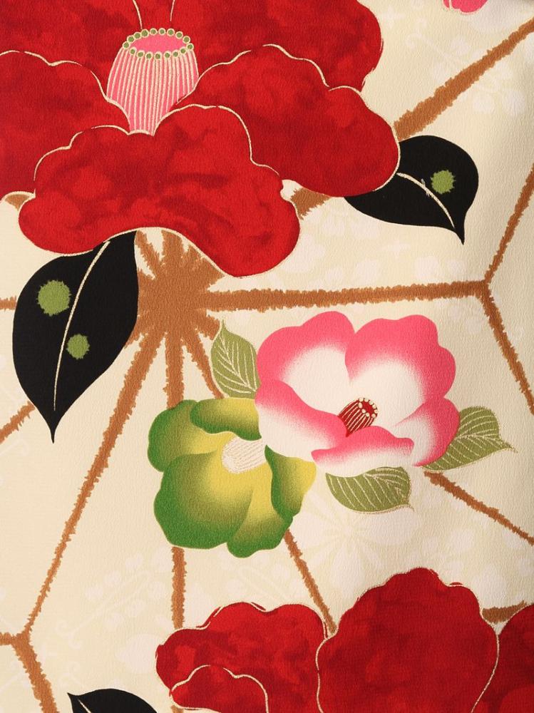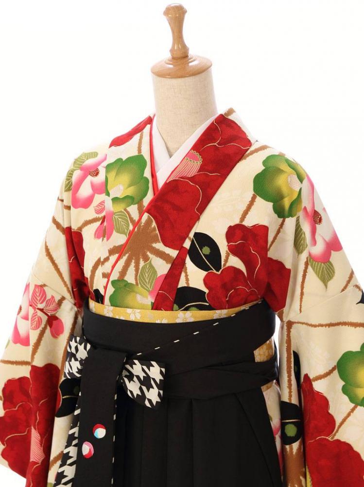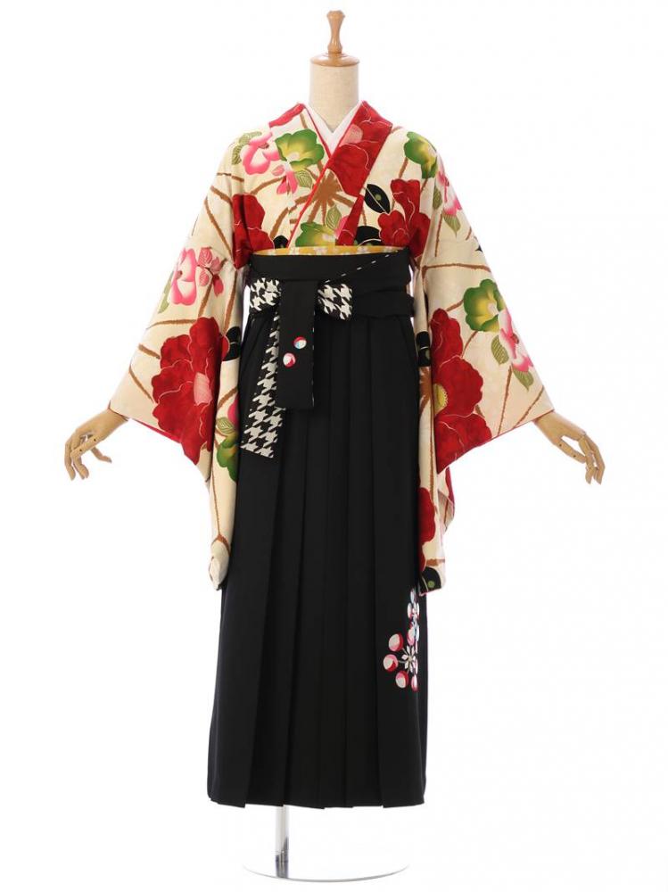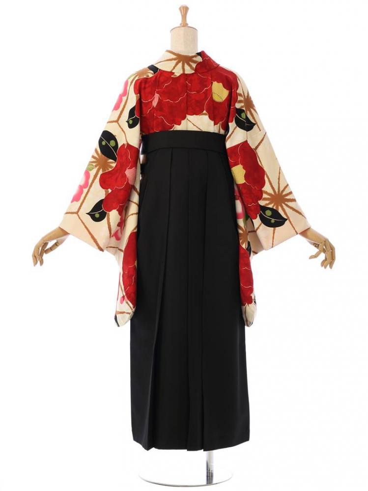 【着物色/柄】着物:クリーム地 大椿 麻の葉 袴:黒袴 風車刺繍 R0150_E-H200
