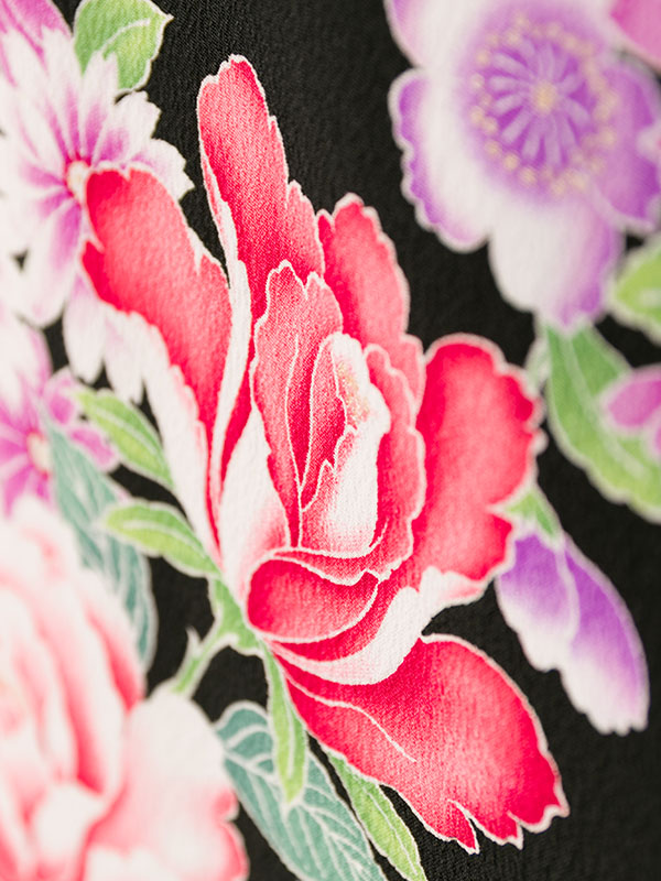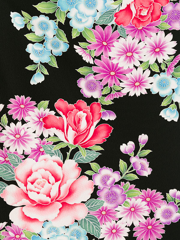■着物:黒地 桜 薔薇■袴:グリーン 縦桜刺繍 2.5