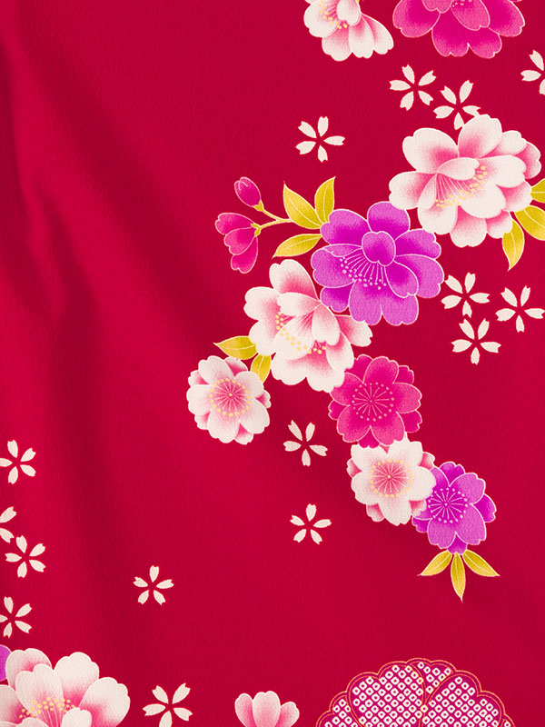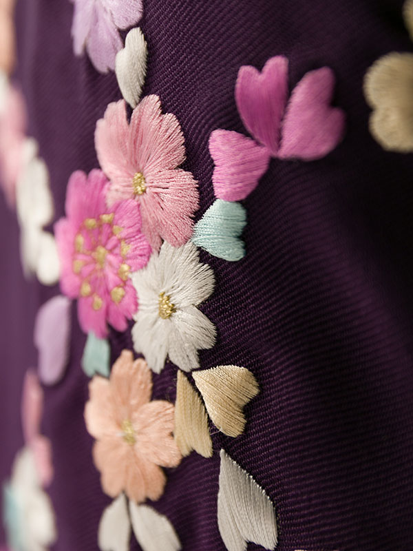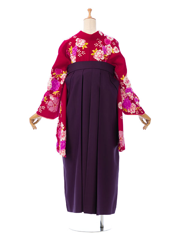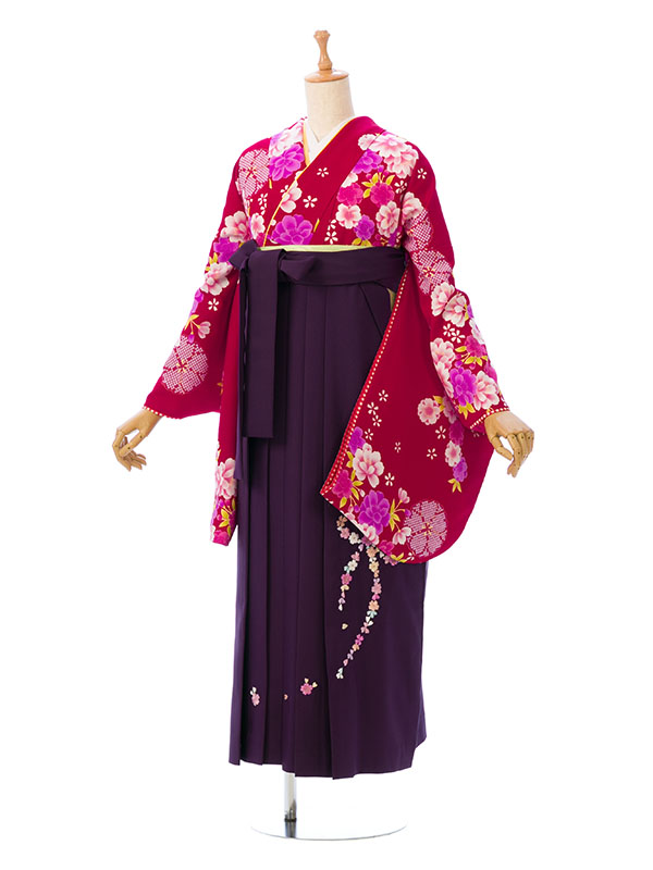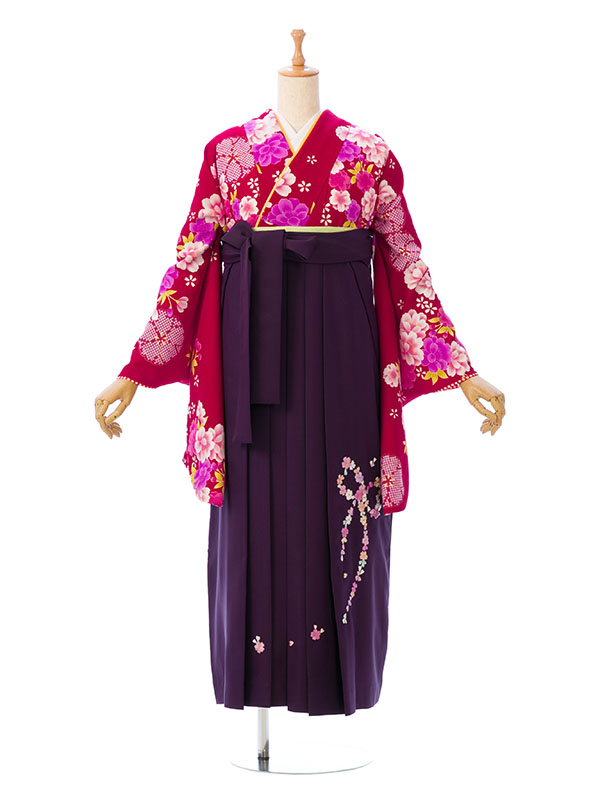 着物:赤地 鹿の子桜袴:紫袴 桜リボン刺繍 2.4