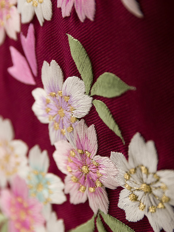 ■着物: 黒地 枝垂れ桜■袴:えんじ袴 桜刺繍 2.6