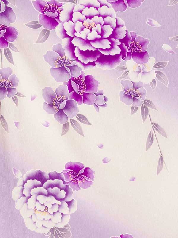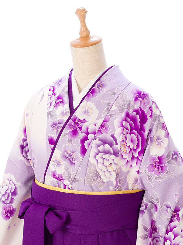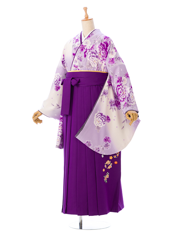 ■着物:紫地白ぼかし 牡丹としだれ桜■袴:紫袴 花の輪 2.5