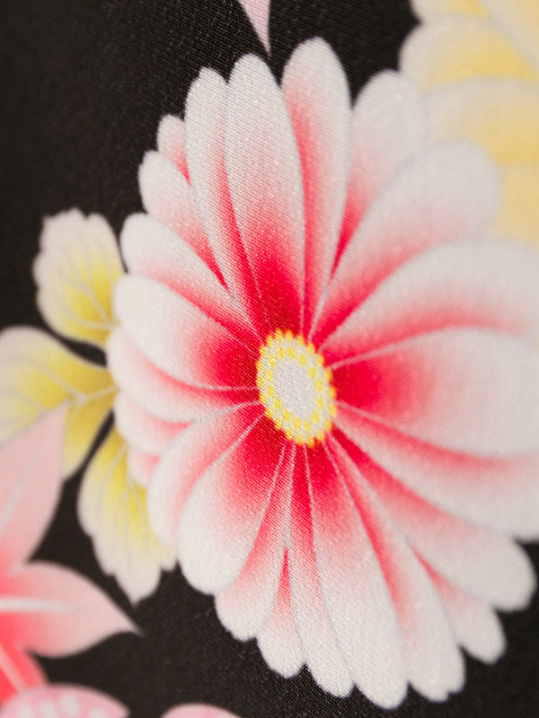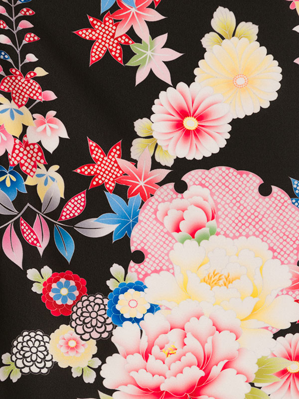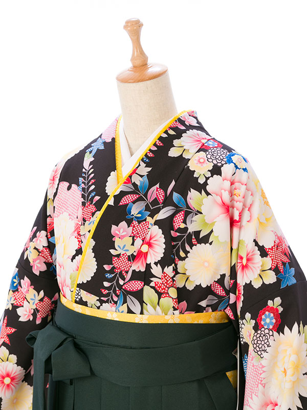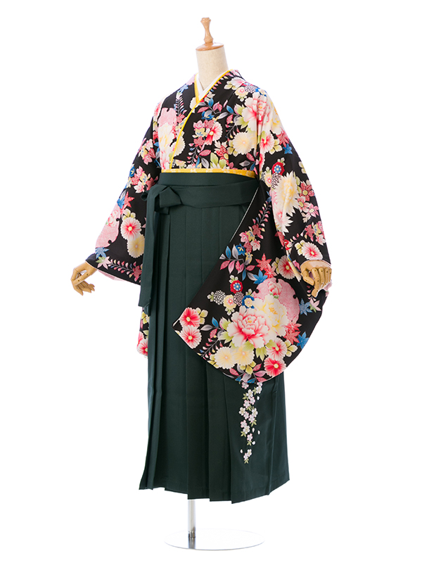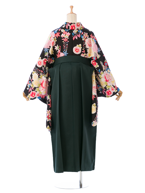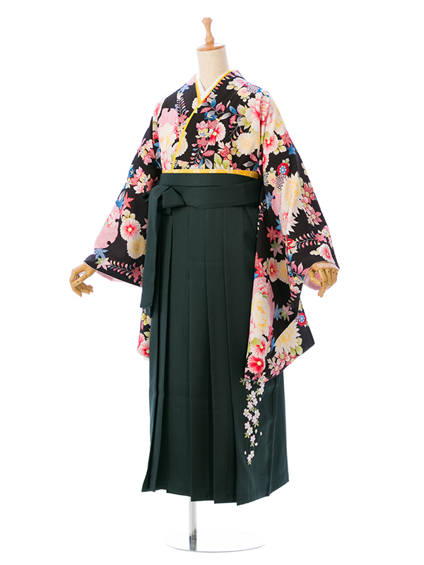 ■着物:黒地 四季の花■袴:グリーン袴 桜刺繍入り 2.4