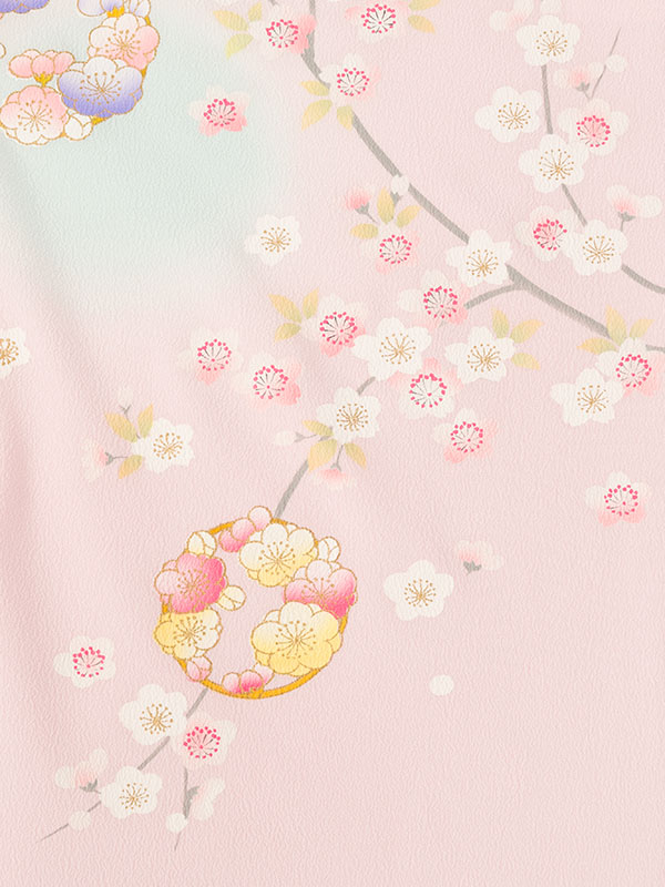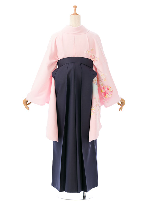着物: ピンク 花の丸袴: 紺袴 2.7