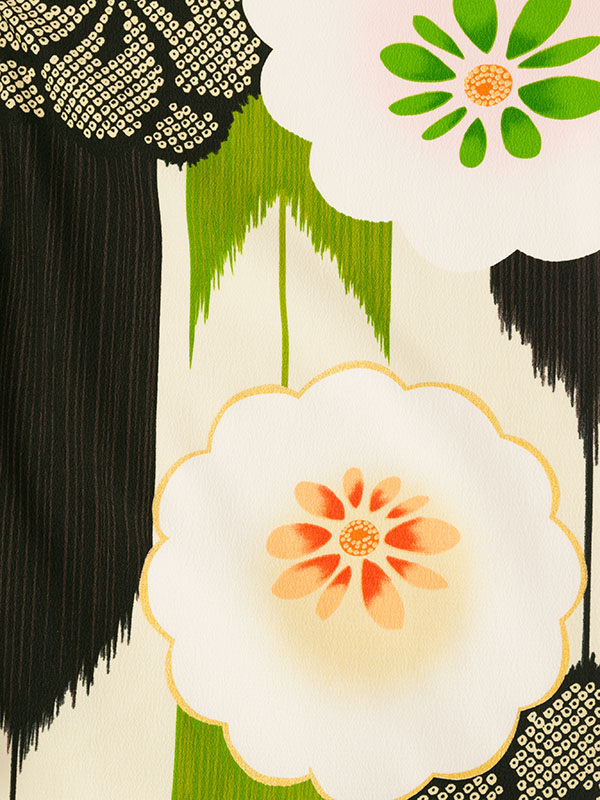 ■着物:黒地 丸菊に矢絣■袴:黒白袴 バイカラー 2.7