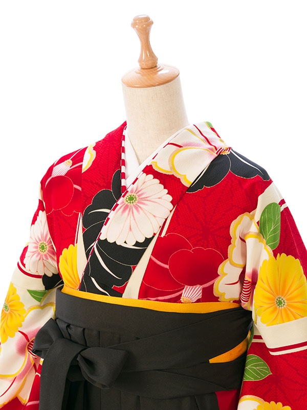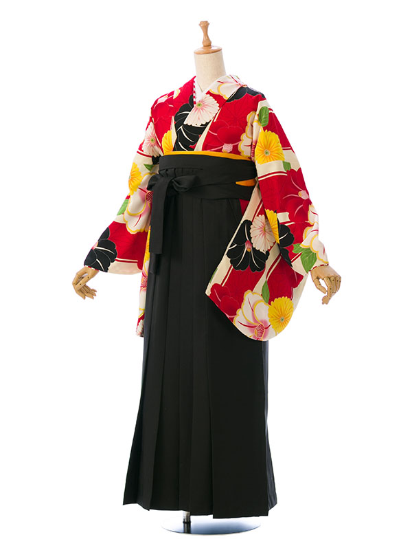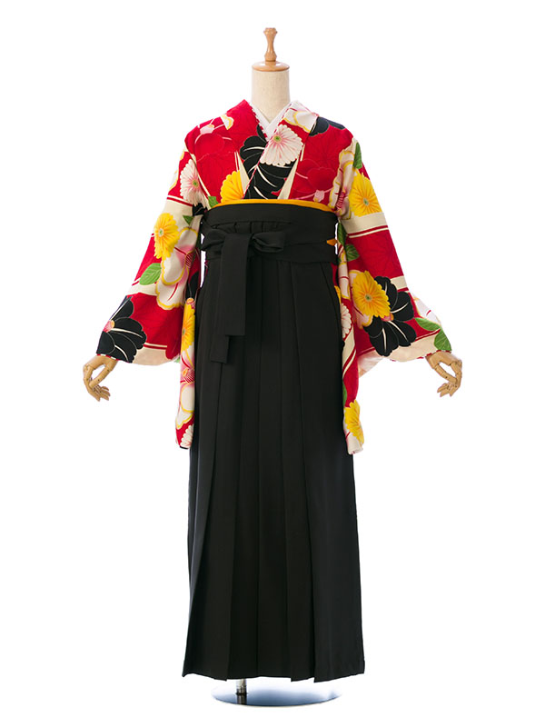 袴レンタル 卒業式トールサイズJAPAN STYLE×中村里砂 大人気の中村里砂とのコラボによる袴セット レトロな文様を華やかに可愛くアレンジした洗練された一枚R1474S_HDL474S 黒袴 2.7