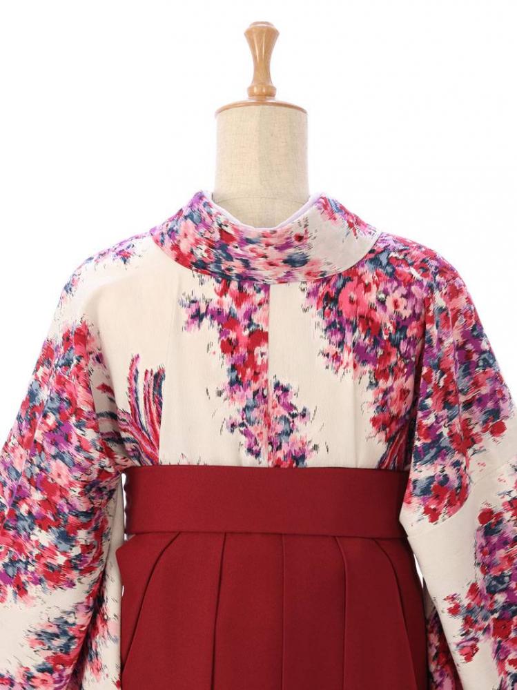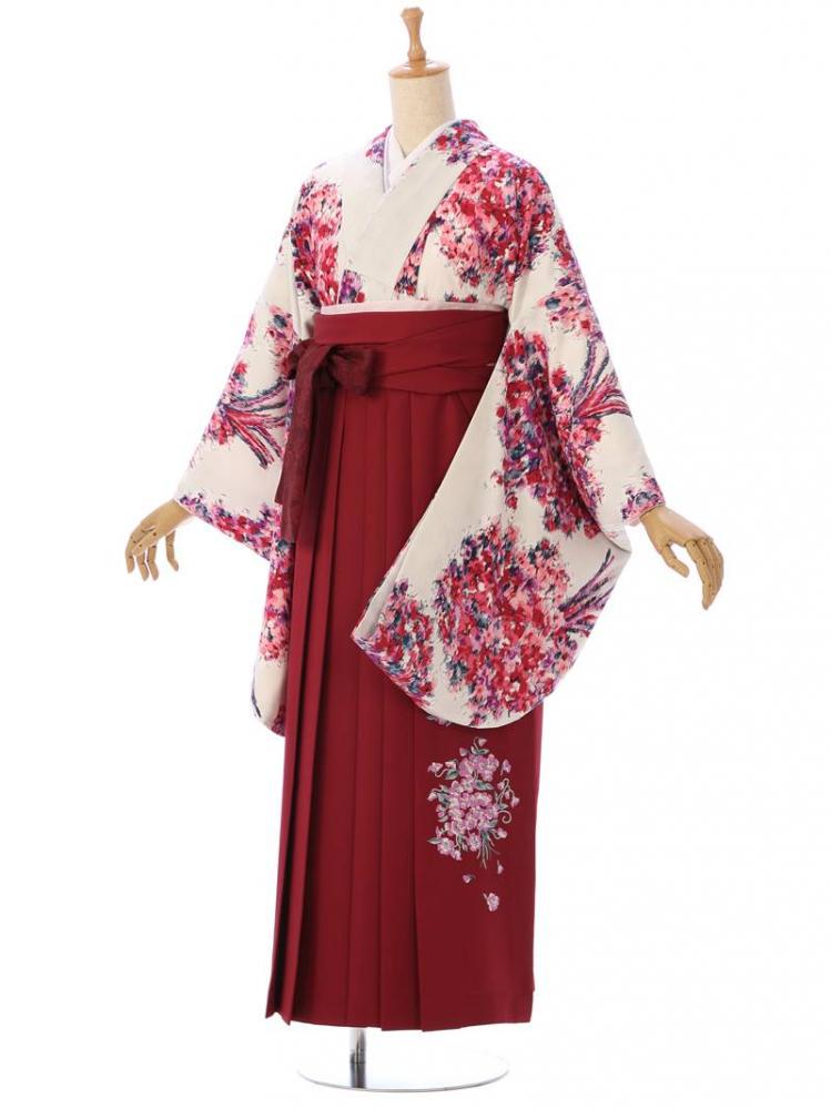 【着物色/柄】着物:クリーム地 ローズブーケ 袴:えんじ地 すみれ刺繍