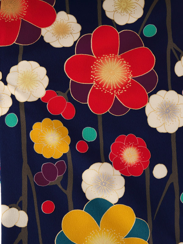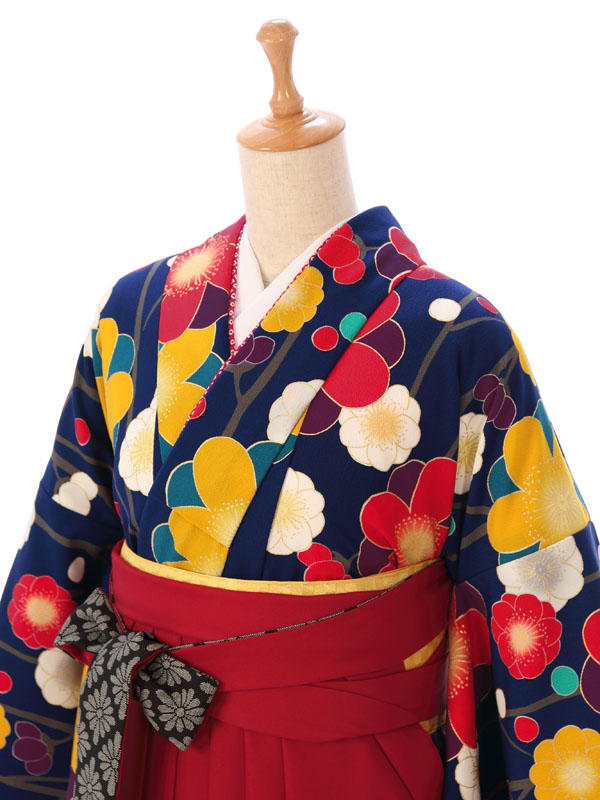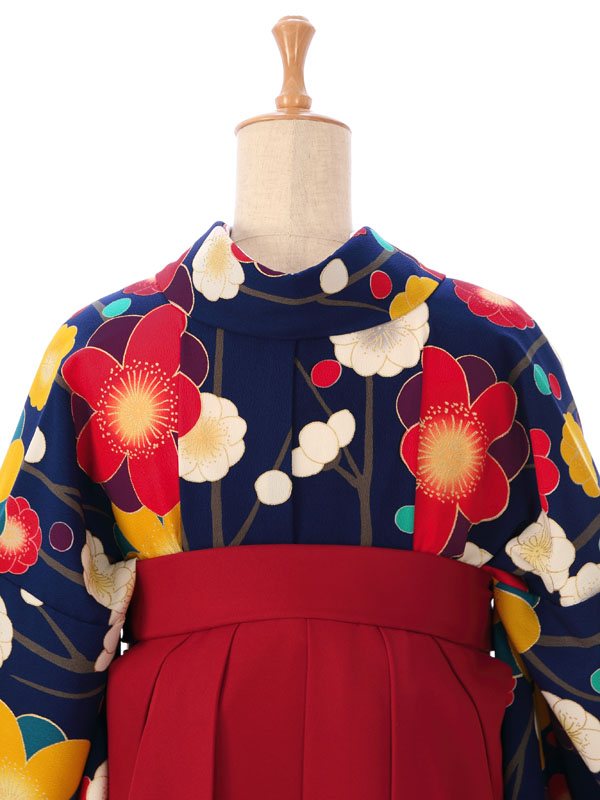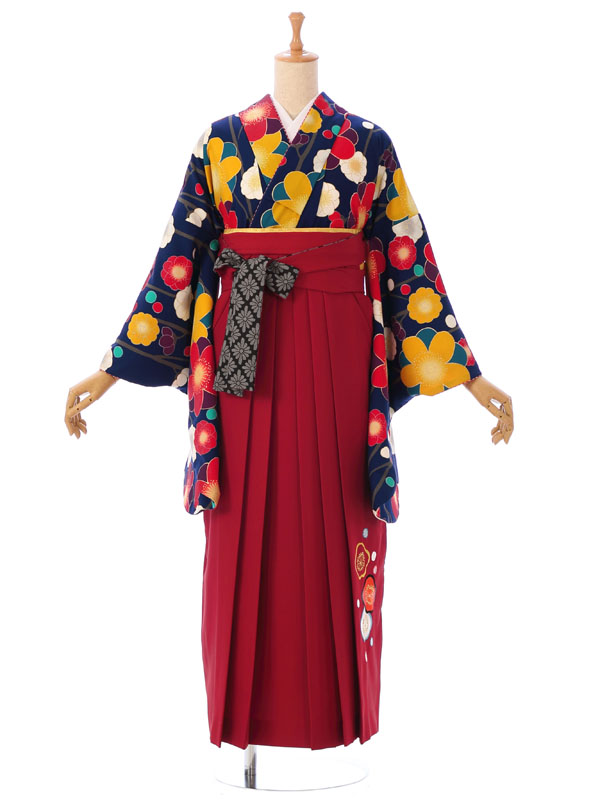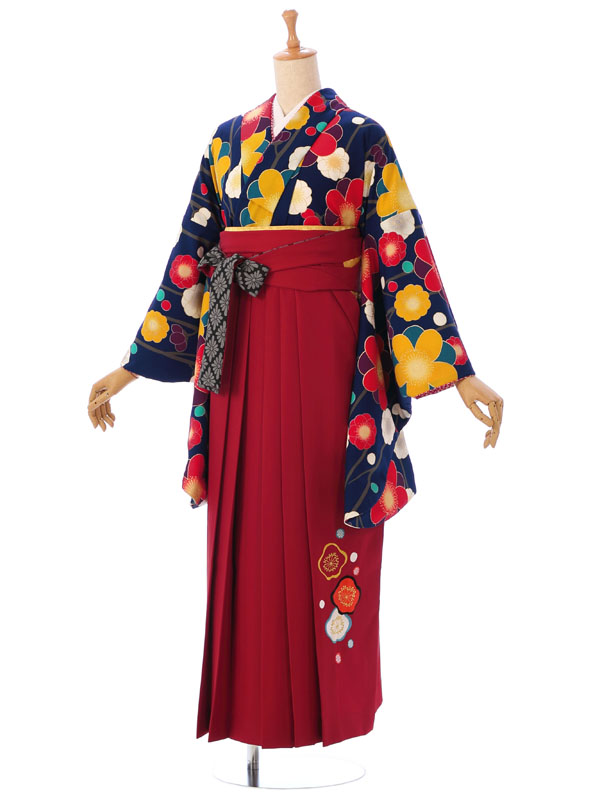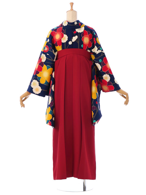 【色/柄】着物:紺 梅 袴:えんじ袴 梅刺繍