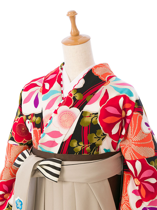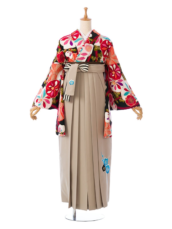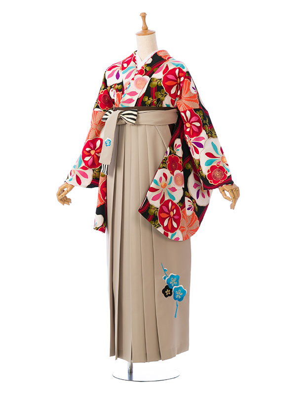 着物:黒 万寿菊に立涌 袴:グレージュ 梅刺繍 2.7