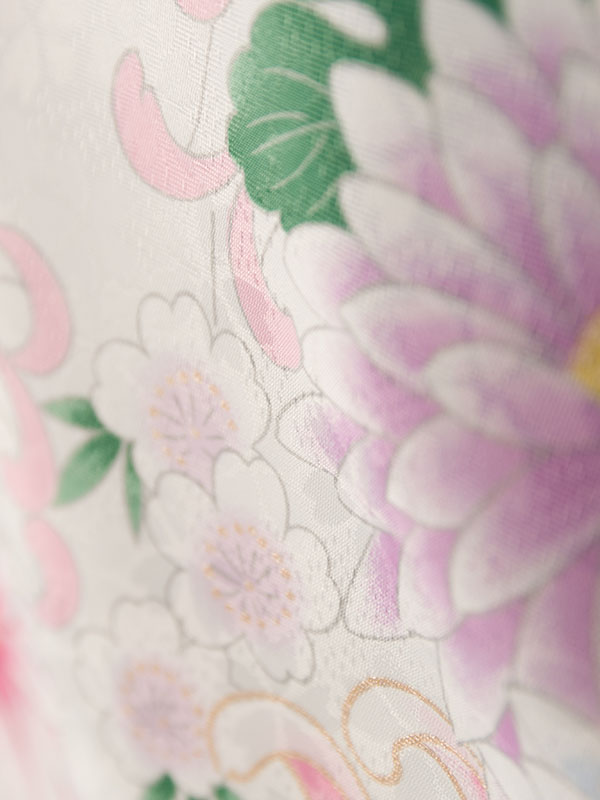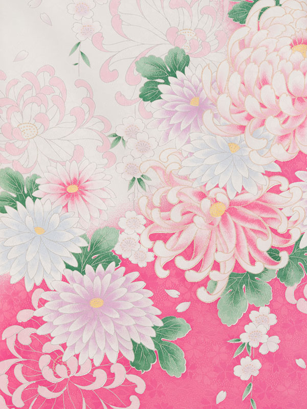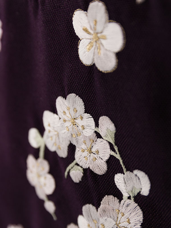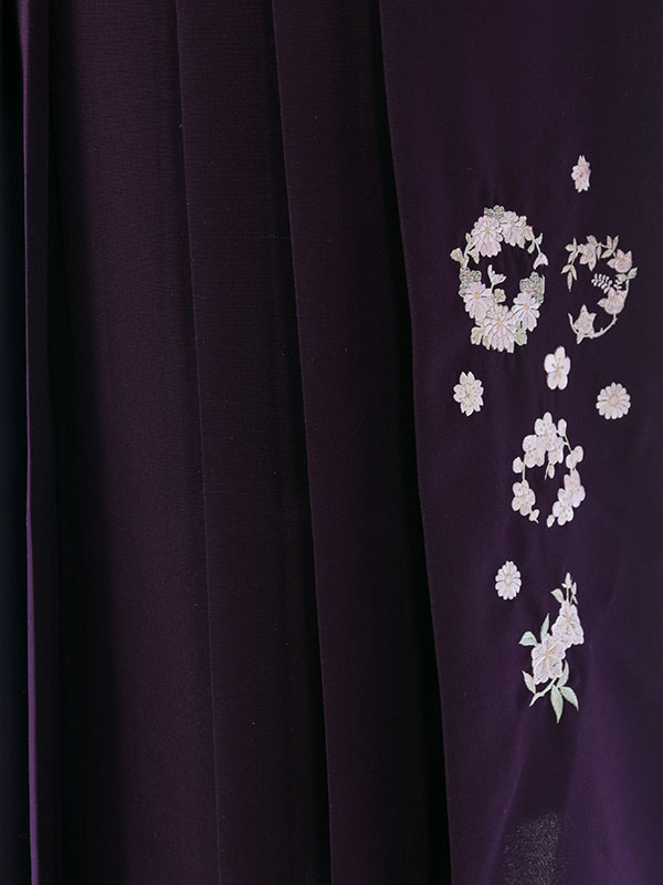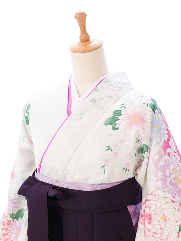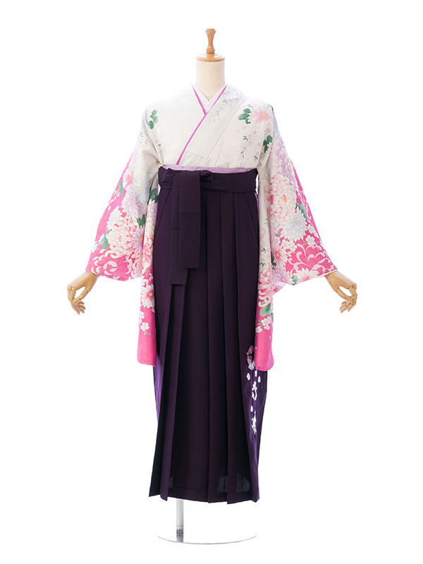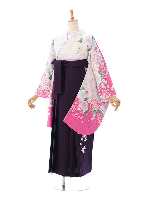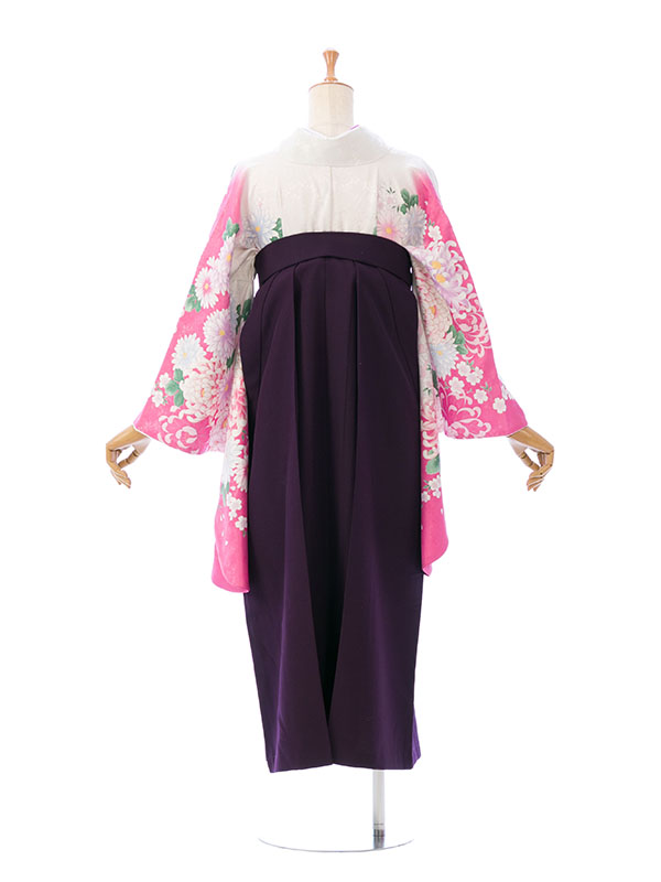 ■着物: 白地 桜地紋 ピンクぼかし 菊■袴: 紫袴 四君子 花の丸刺繍 2.4