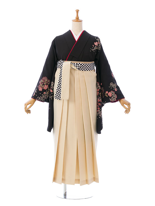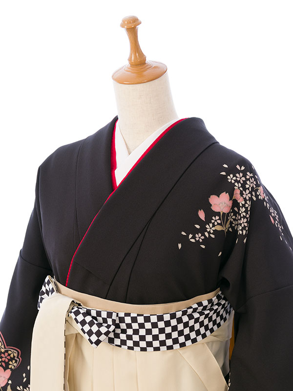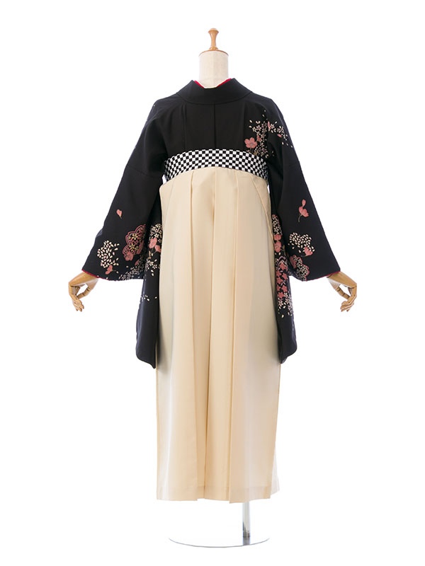 ■着物: 黒地 桜■袴: オフ白袴 紐市松 2.4