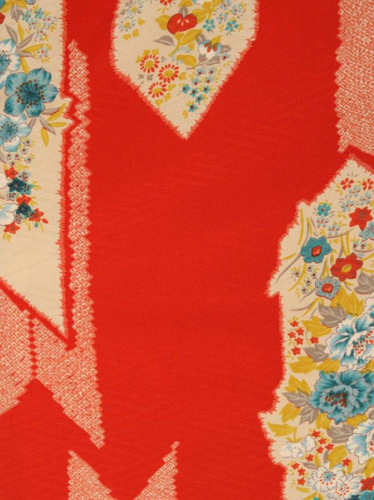 Modern Antenna 昭和初期までの古布を復刻しアレンジを加えたレトロモダンの袴セットです 袴は紺×オレンジのバイカラーで可愛い! MN-6R0131_E-H206-23-1※着物の衿に小さくグレーの色落ちがございますが、着用には問題ございません。