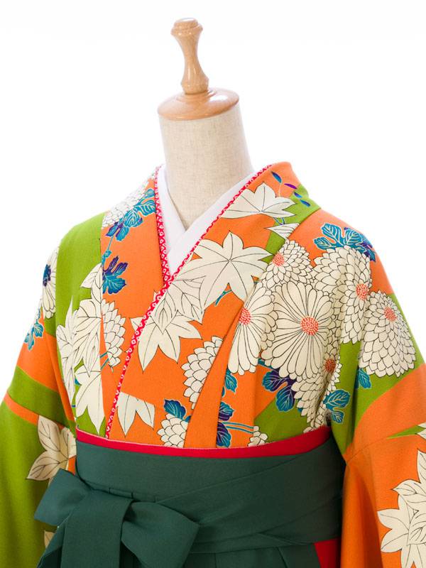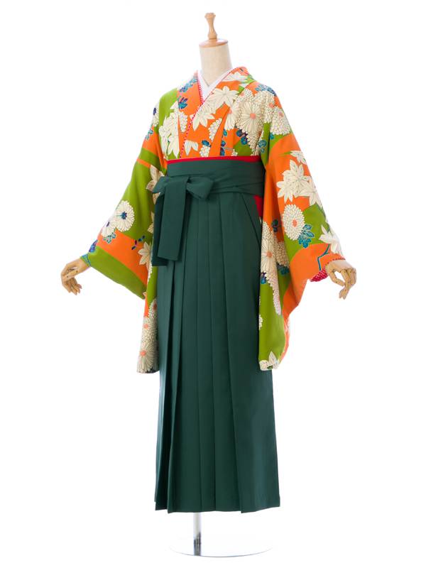 ■着物: 九重 抹茶×オレンジ 菊 楓 ■袴: グリーン袴 2.4