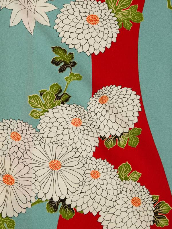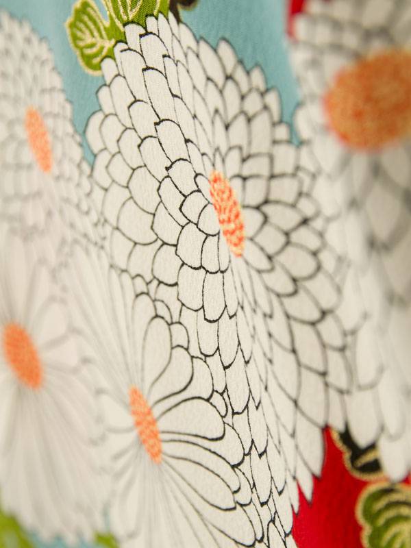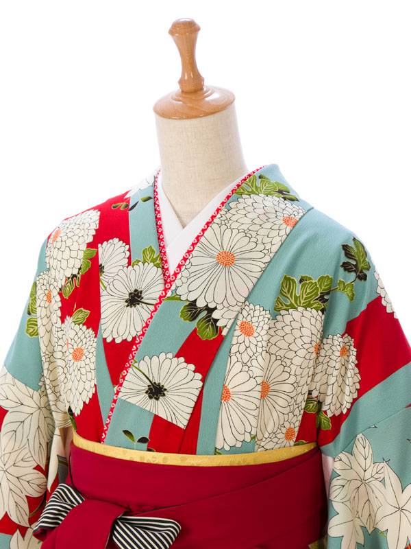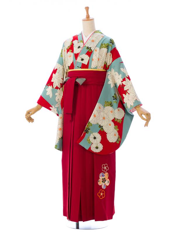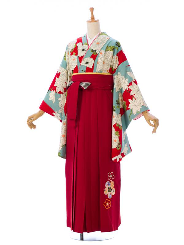 ■着物:浅葱色 菊 楓■袴:赤地 刺繍入り