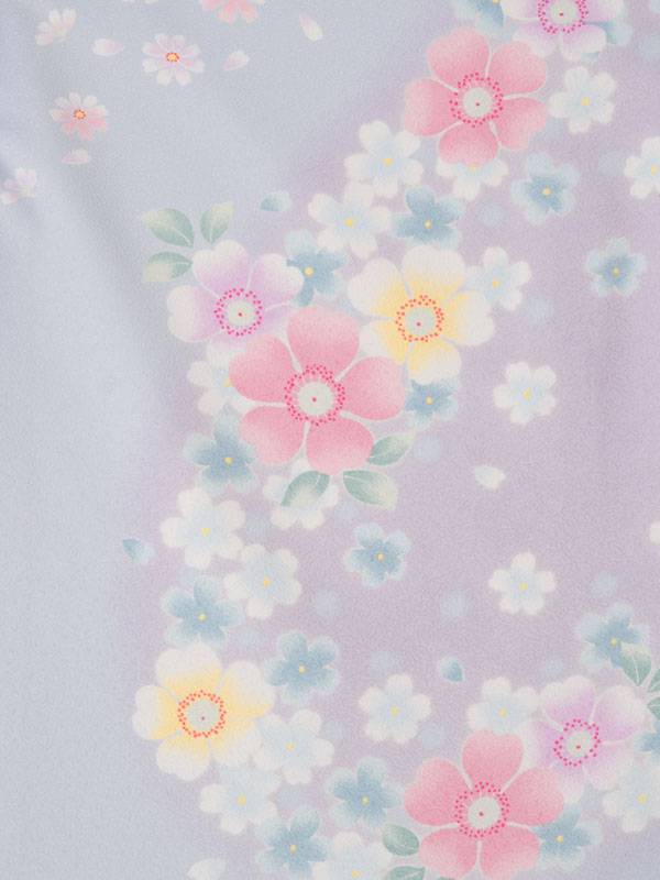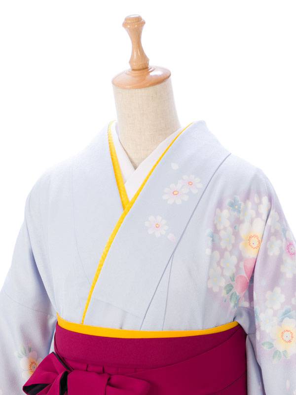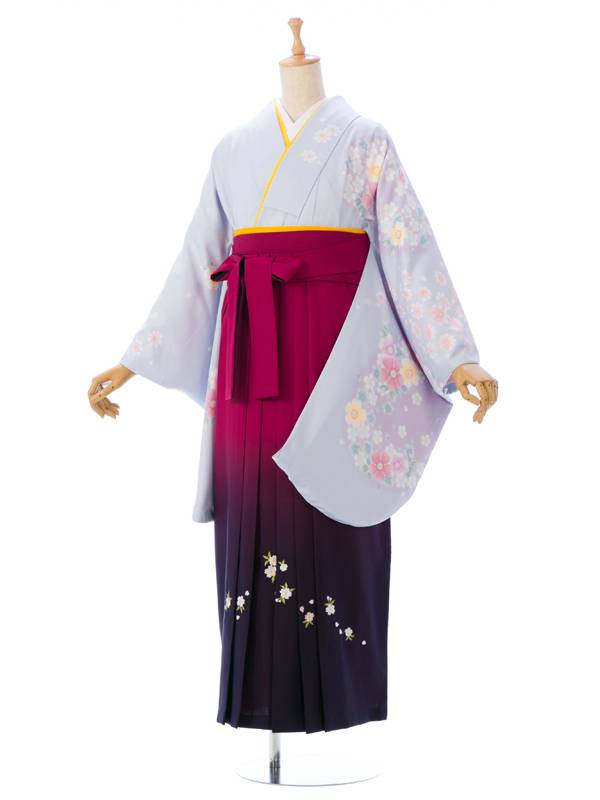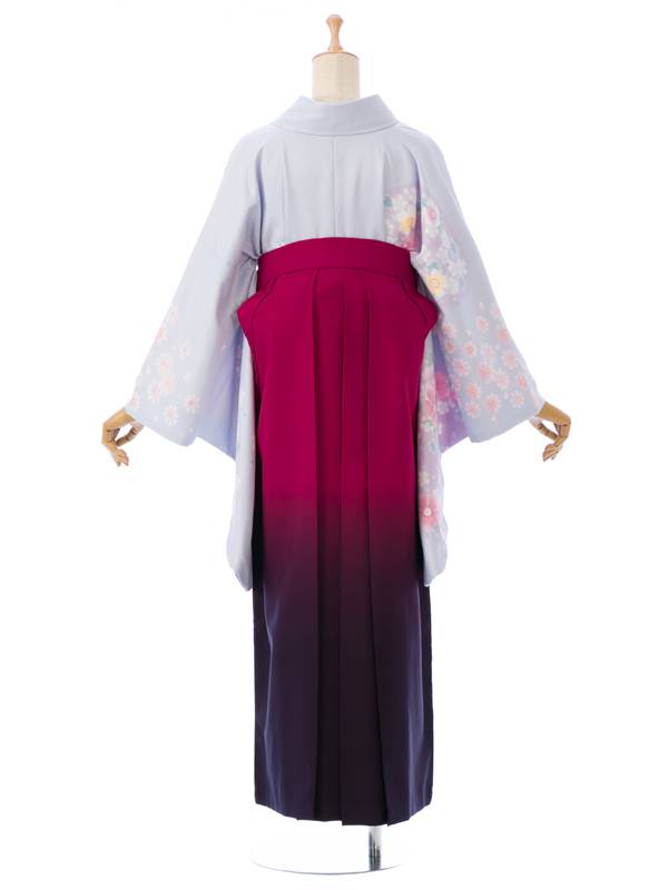 ■着物: 水色 秋桜■袴: 赤紫地 紫ぼかし 桜刺繍