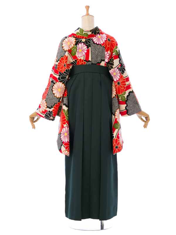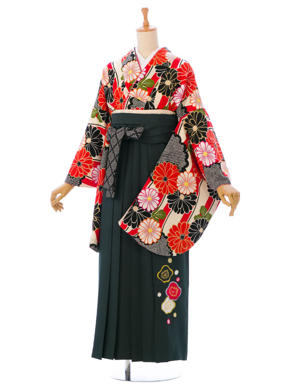 ■着物:クリーム 赤黒菊■袴:グリーン袴 梅刺繍
