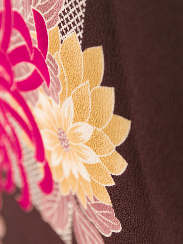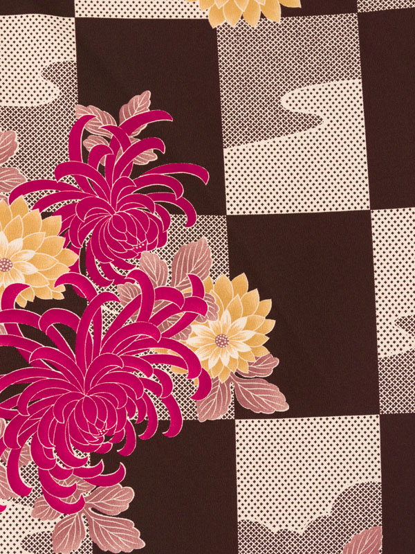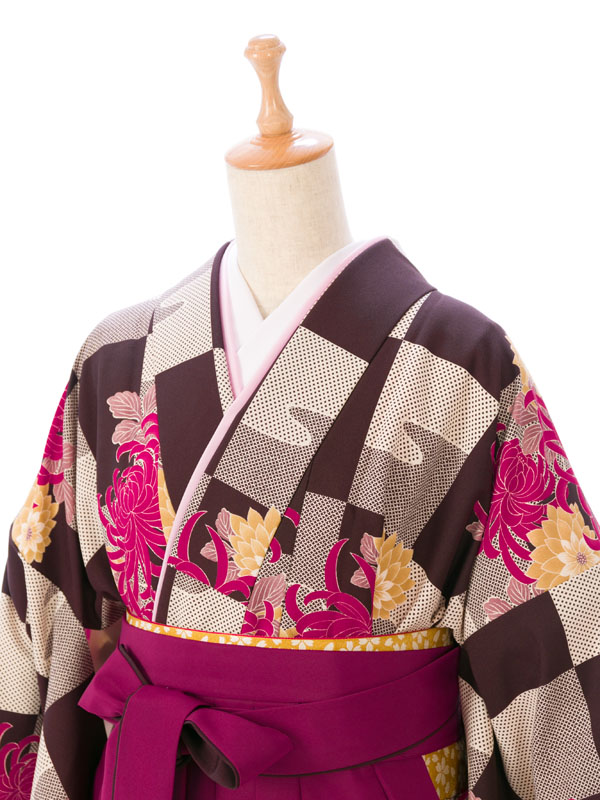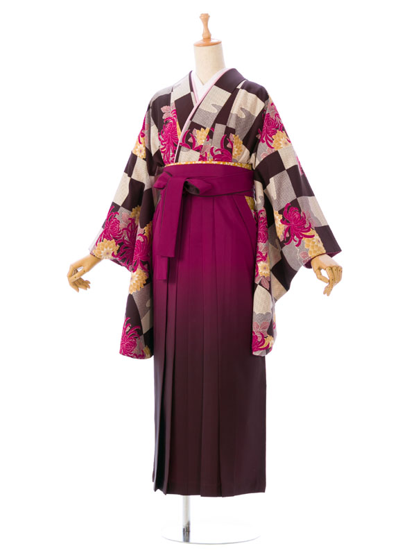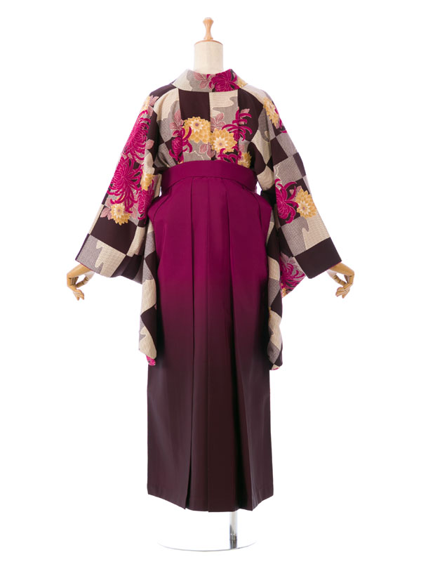 ■着物:こげ茶×クリーム地 市松に菊■袴:ワインぼかし袴 2.4