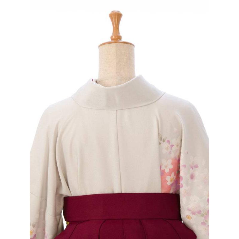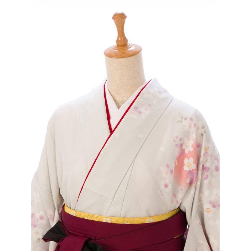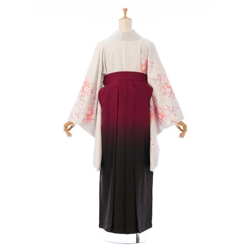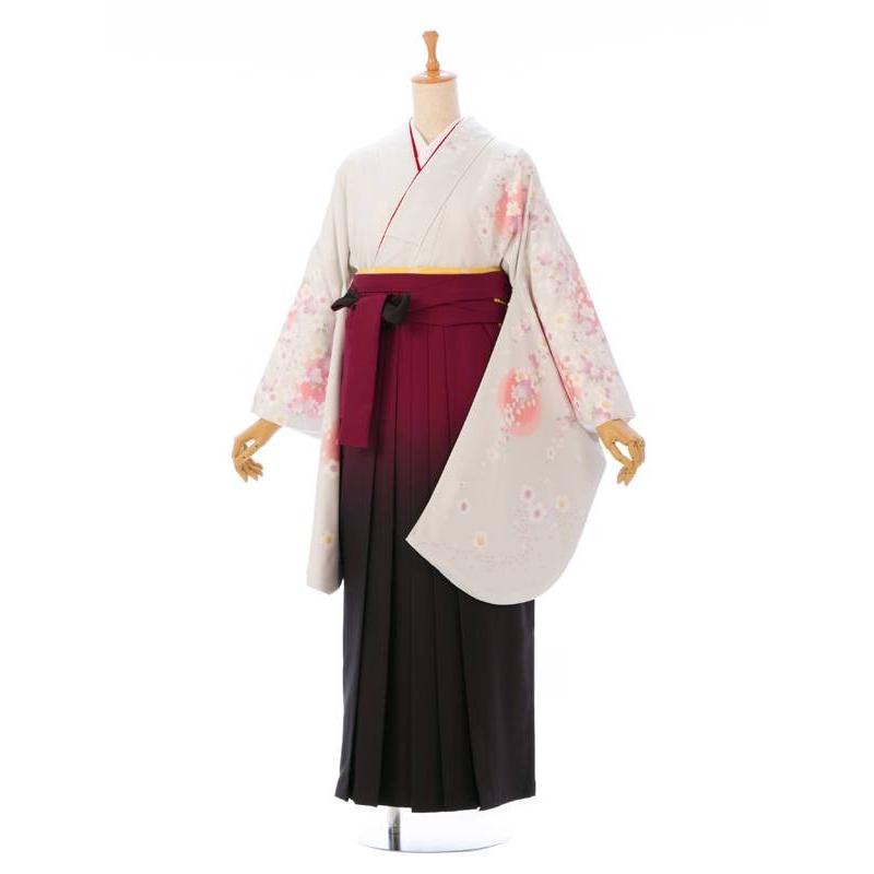 着物: 薄グレー地桜小紋柄 袴: ワインぼかし袴