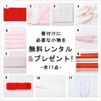 着物の着付けに必要な基本的な小物は全てセットでレンタルしております。ご自分での用意が不要ですので、追加費用もかからずお手軽にご利用いただけます。