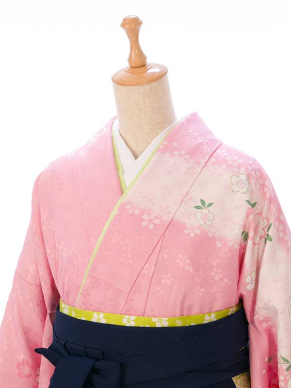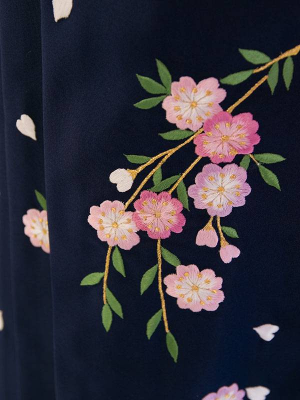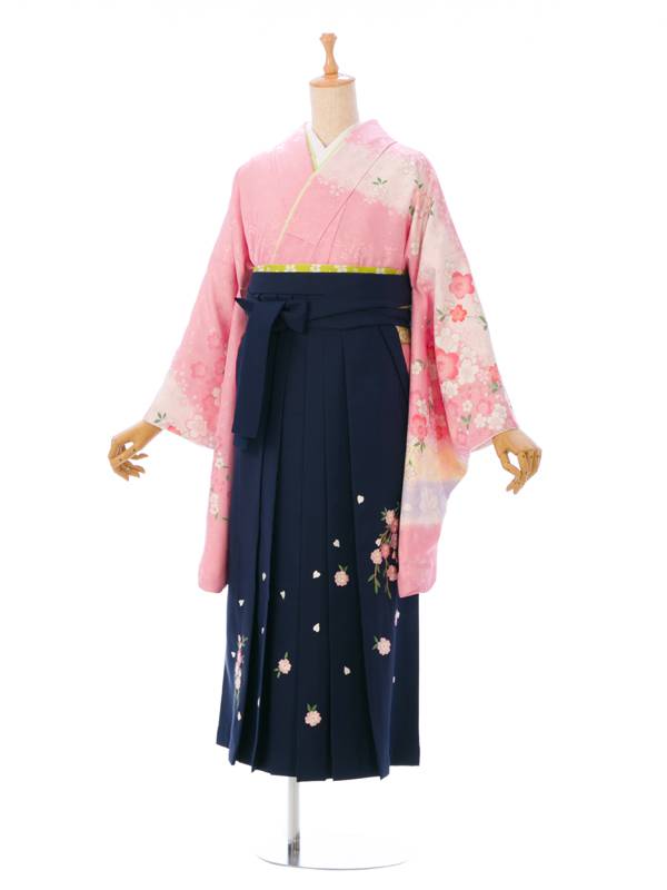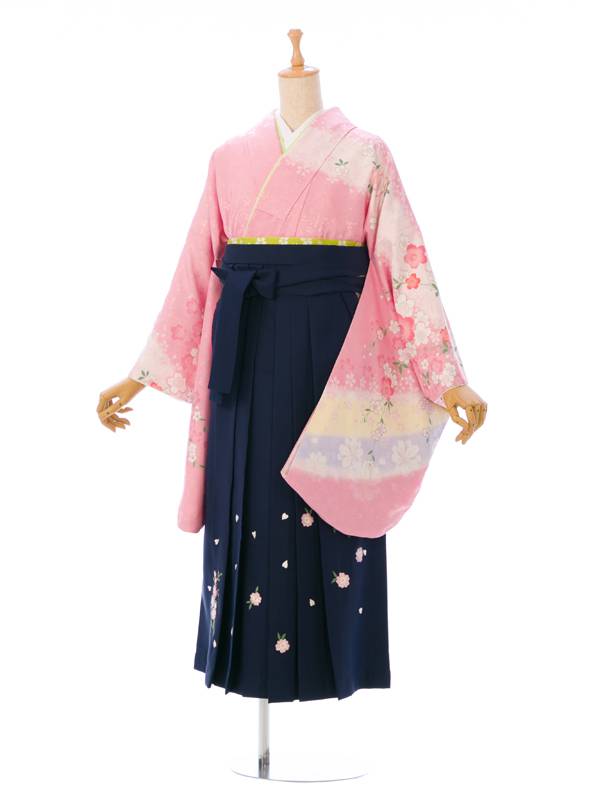 ■着物:ピンク地 桜地紋 枝垂れ桜■袴:紺袴 桜刺繍