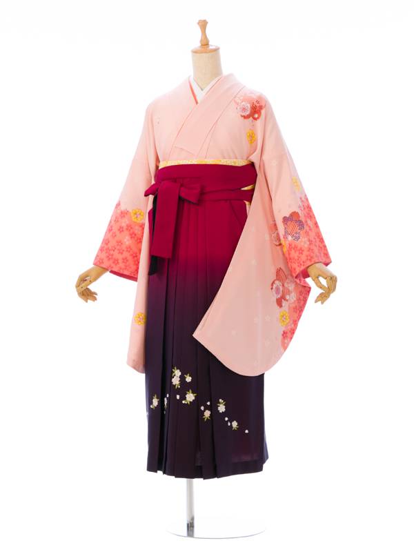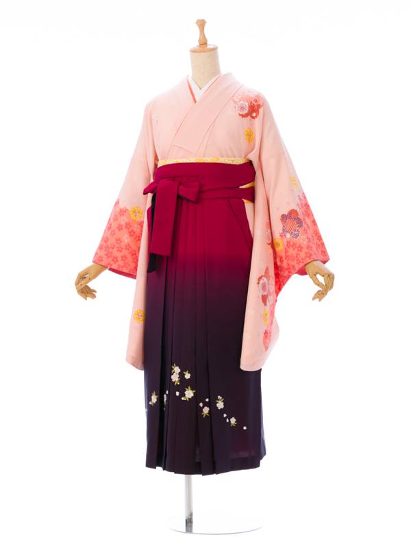 ■着物:ピンク 桜■袴:赤紫地 紫ぼかし 桜刺繍