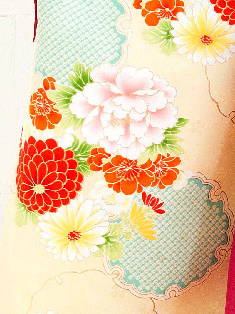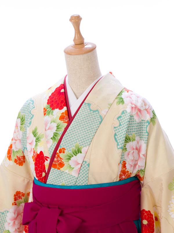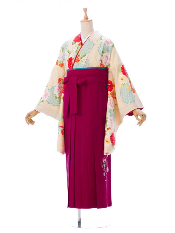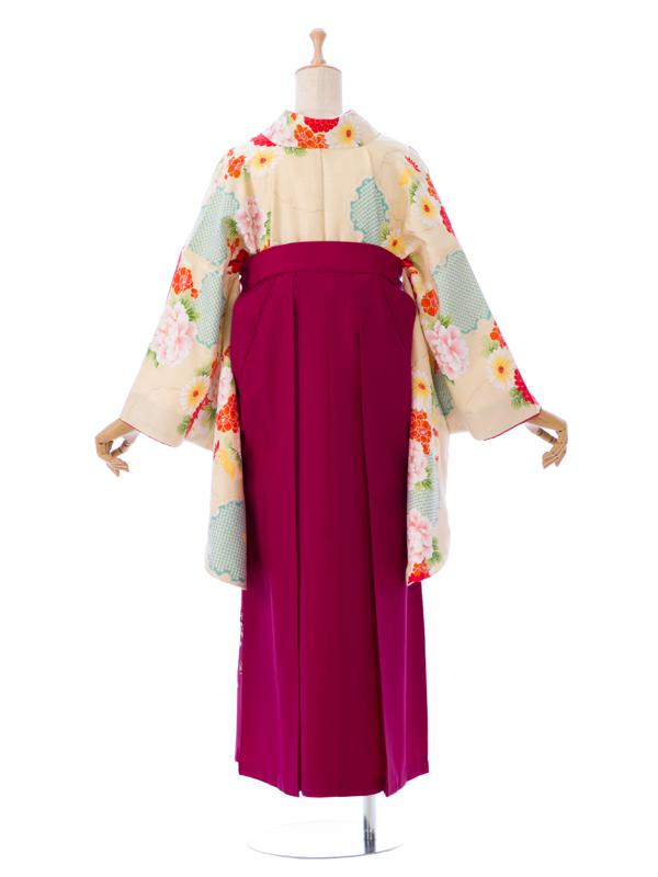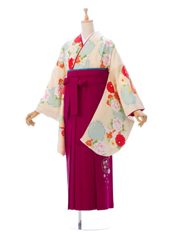 ■着物:クリーム 花雪輪■袴:ローズピンク地 雪輪に梅刺繍 2.4