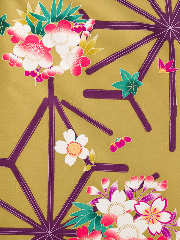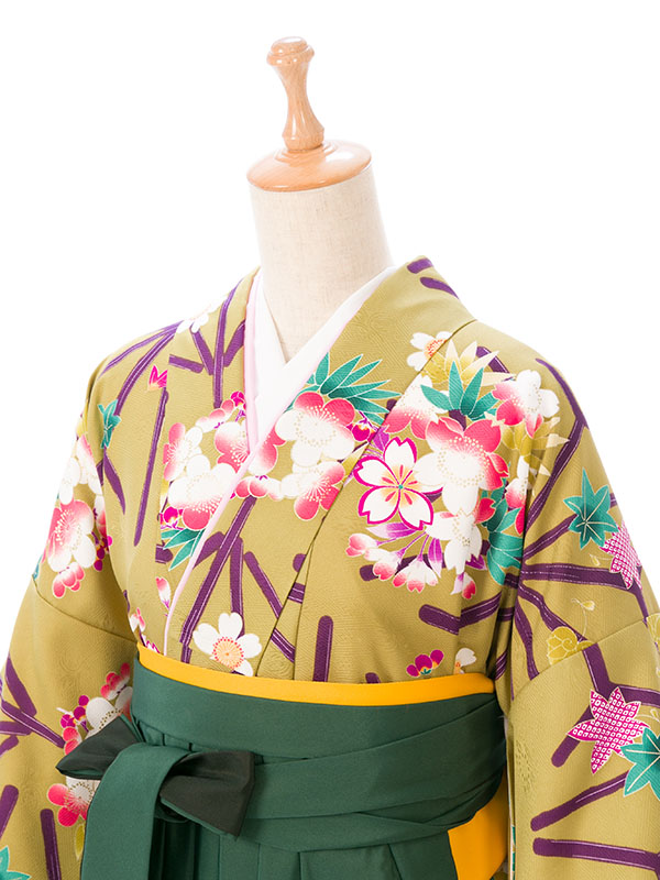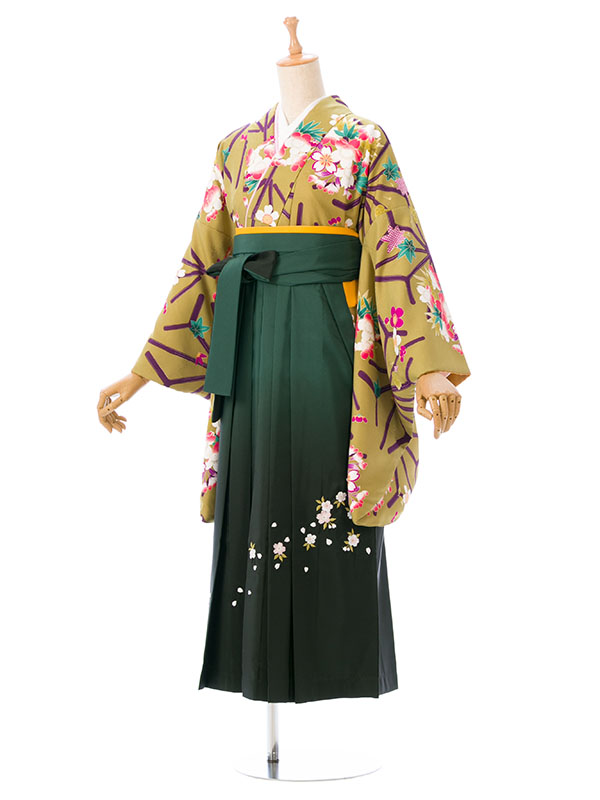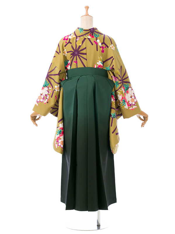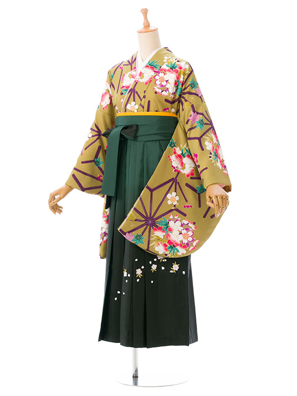 ■着物:抹茶地 麻の葉に桜梅■袴:グリーンぼかし袴 桜刺繍 2.4