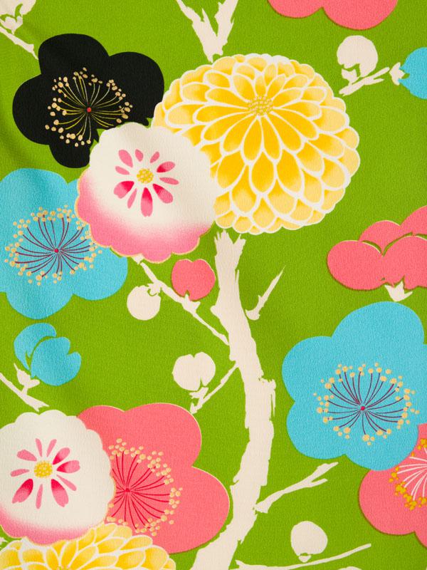 着物:抹茶地 梅と万寿菊