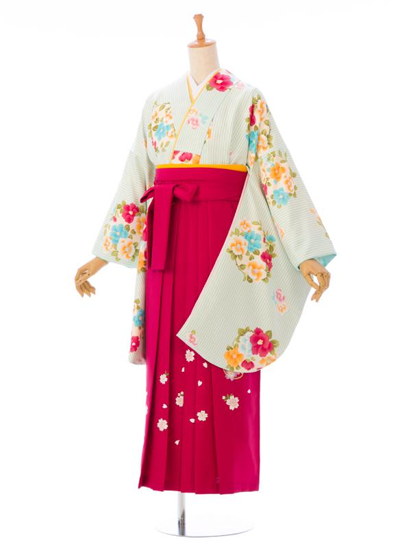 水色縞 キュートなトーンでまとまった袴セットですR1499_E-H96-240