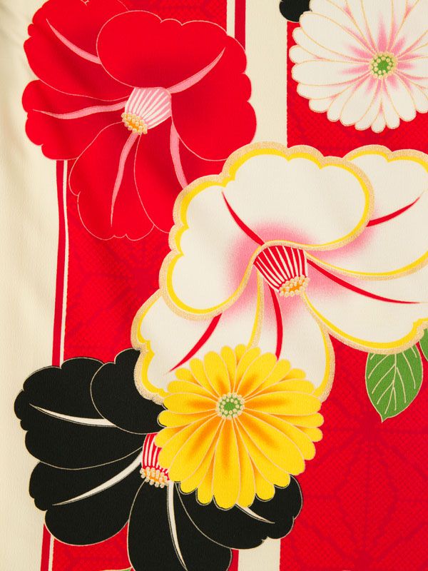 ■着物:クリーム/赤 椿に縞 ■袴:黒袴 雪輪に梅刺繍 2.7