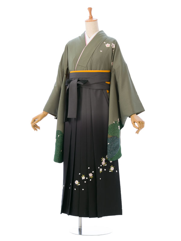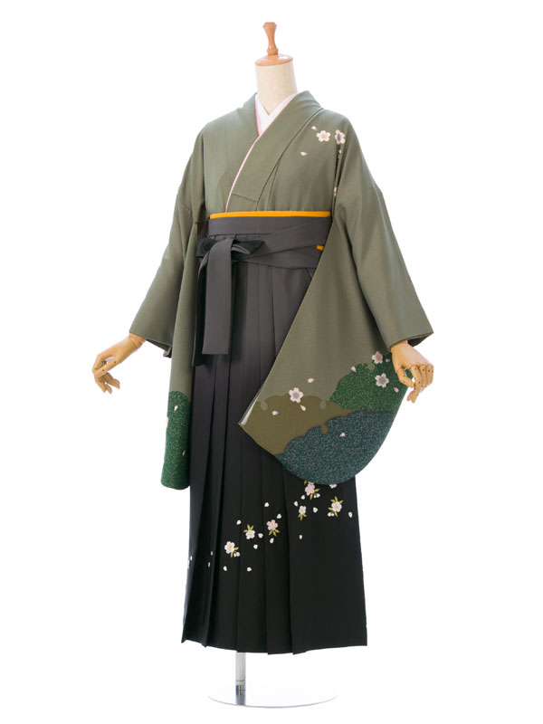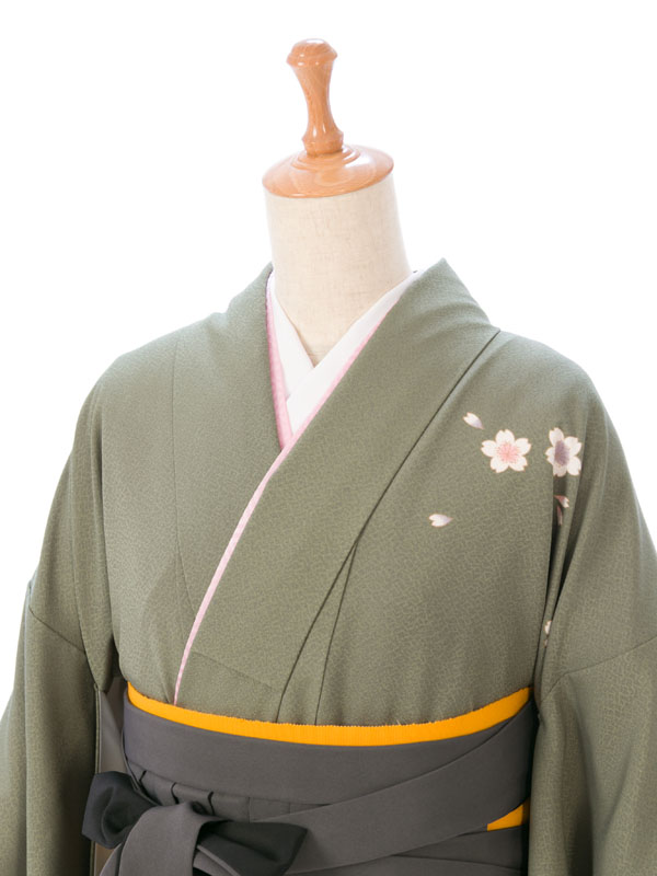 ■着物:うぐいす色 雪輪 桜■袴:グレーぼかし 桜刺繍 2.4