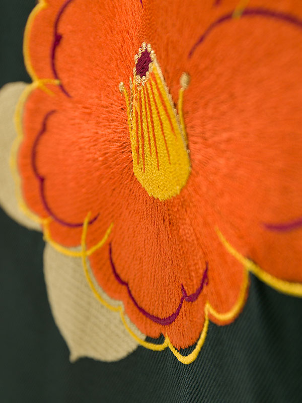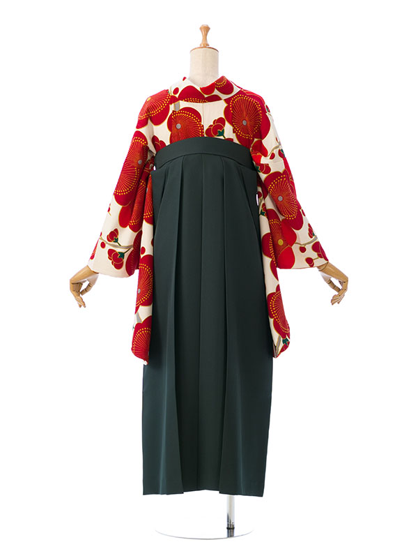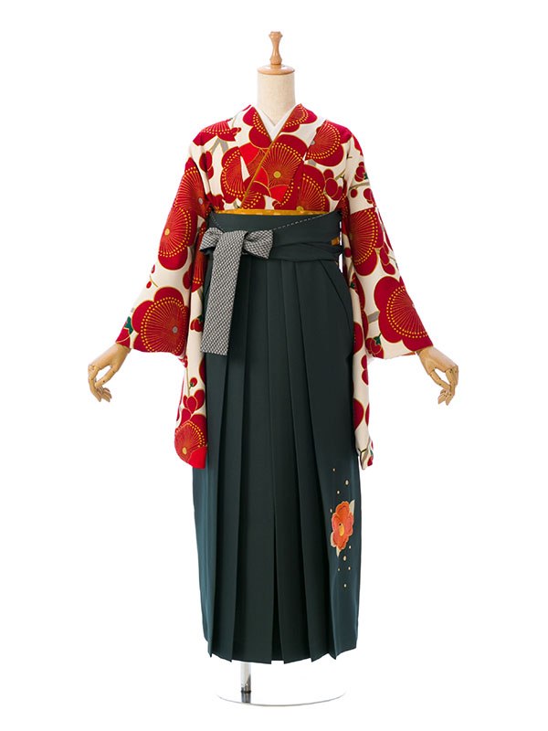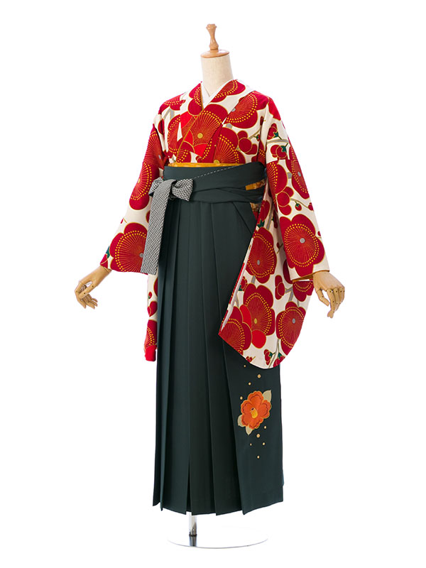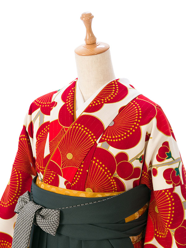着物:オフ白 梅づくし袴:グリーン袴 椿刺繍 2.5