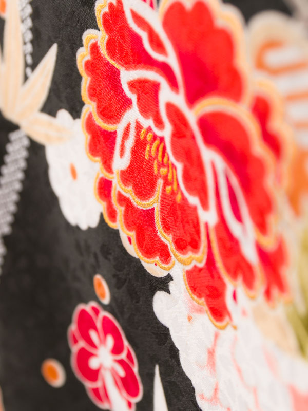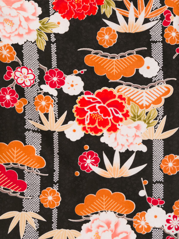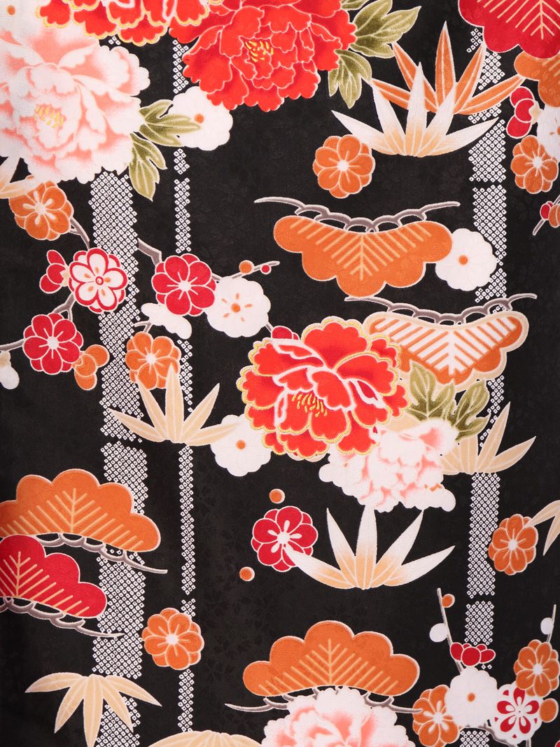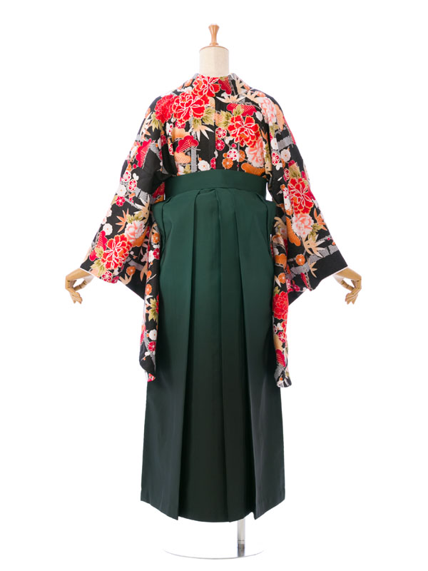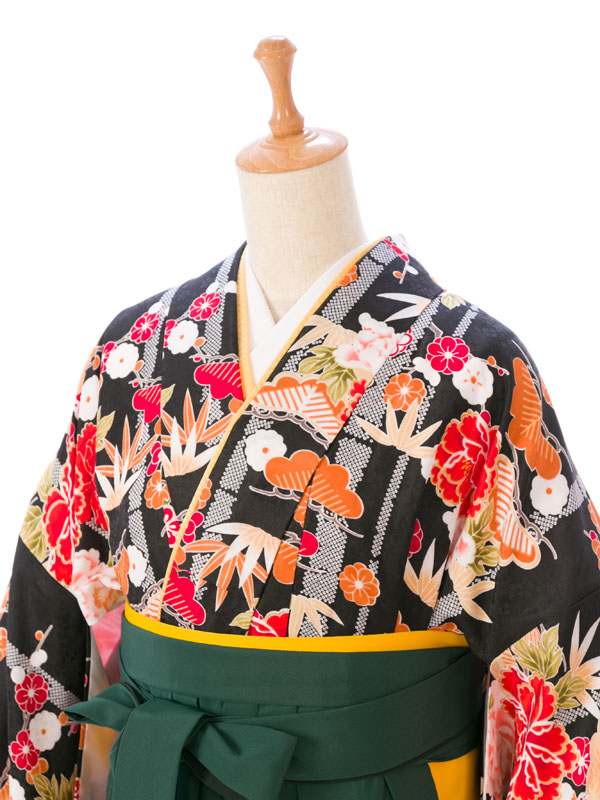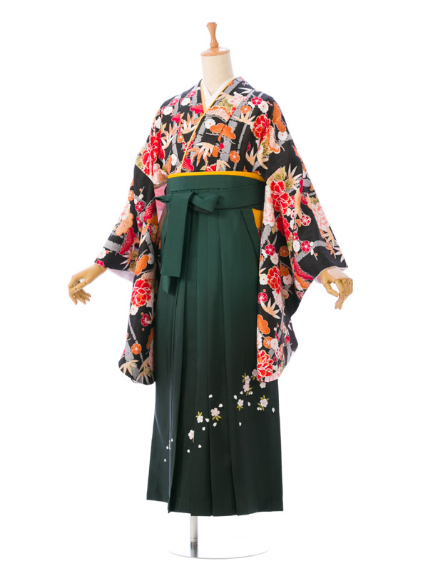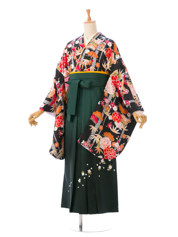 ■着物:黒地 松竹梅 牡丹■袴:グリーンぼかし袴 桜刺繍入り 2.5