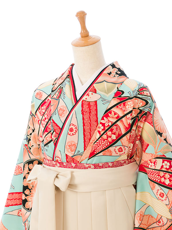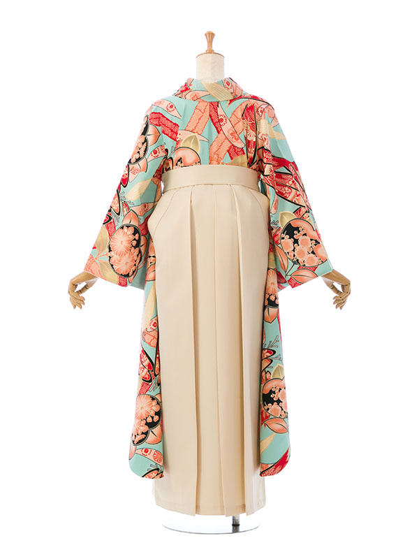 ■着物:水色 竹に橘■袴:アイボリー袴 95cm