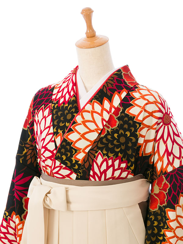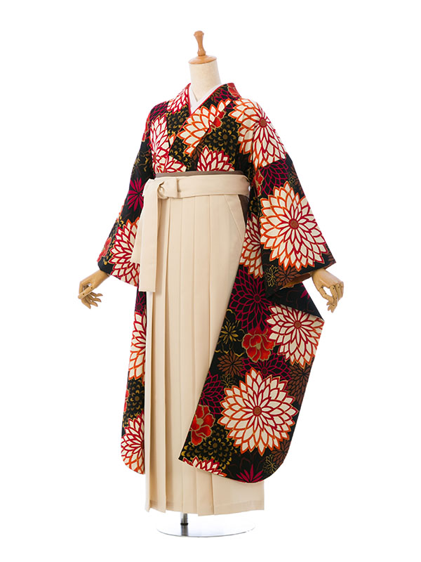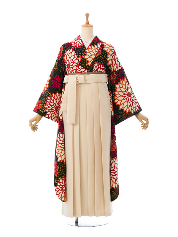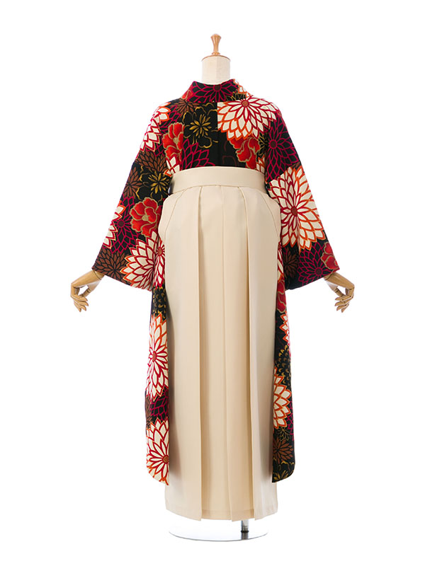 ■着物:黒地 菊尽くし■袴:アイボリー袴 95cm