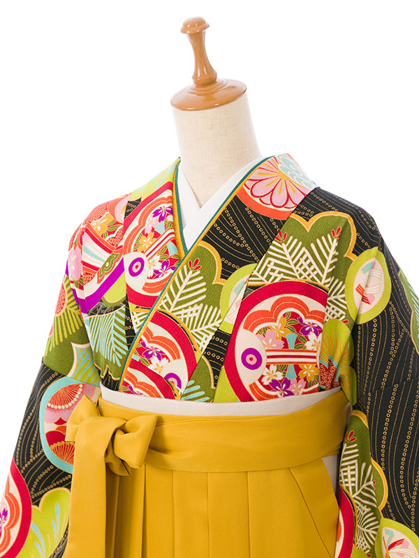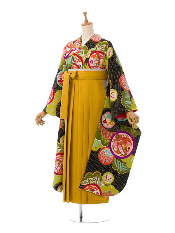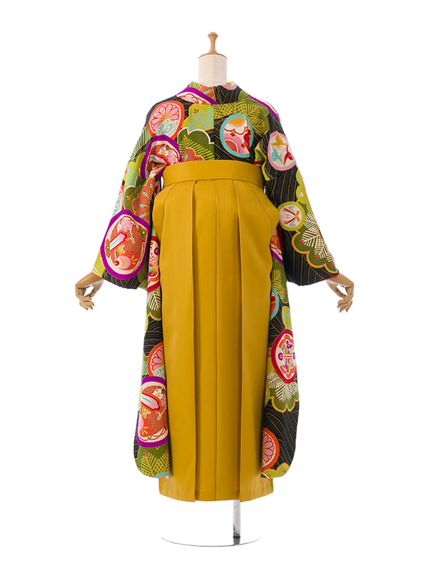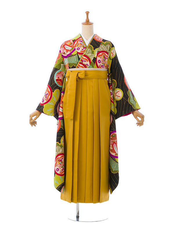 ■着物:黒地 松に丸紋■袴:からし袴 91cm