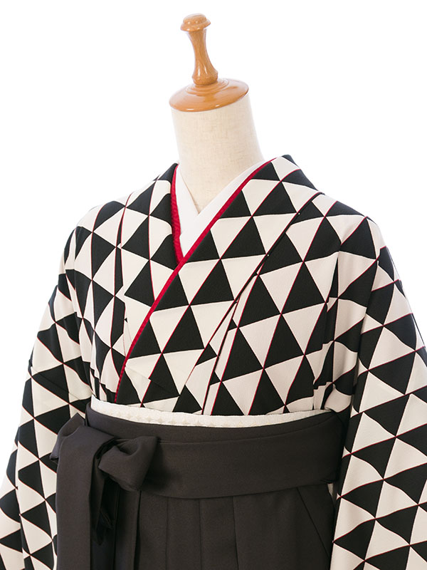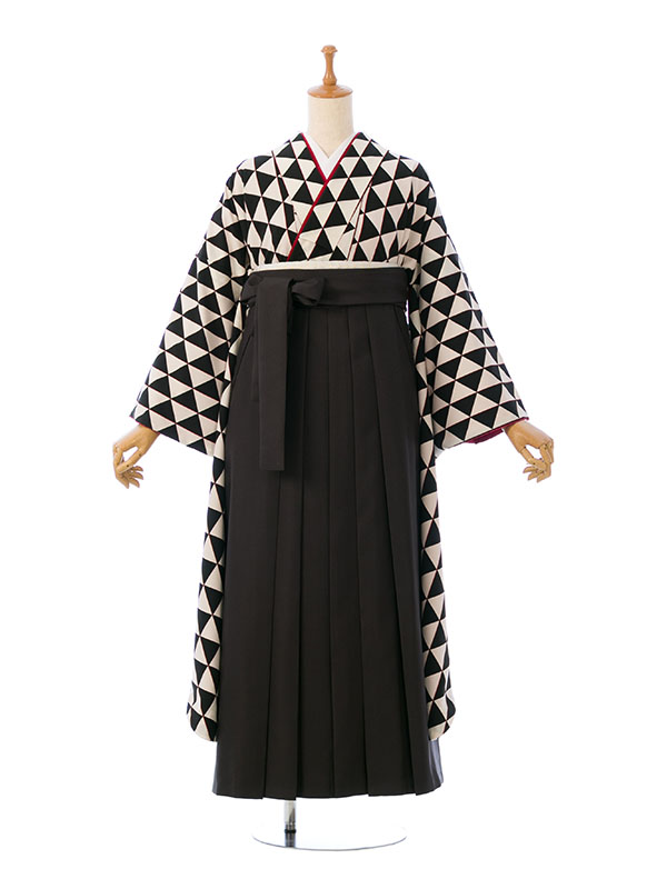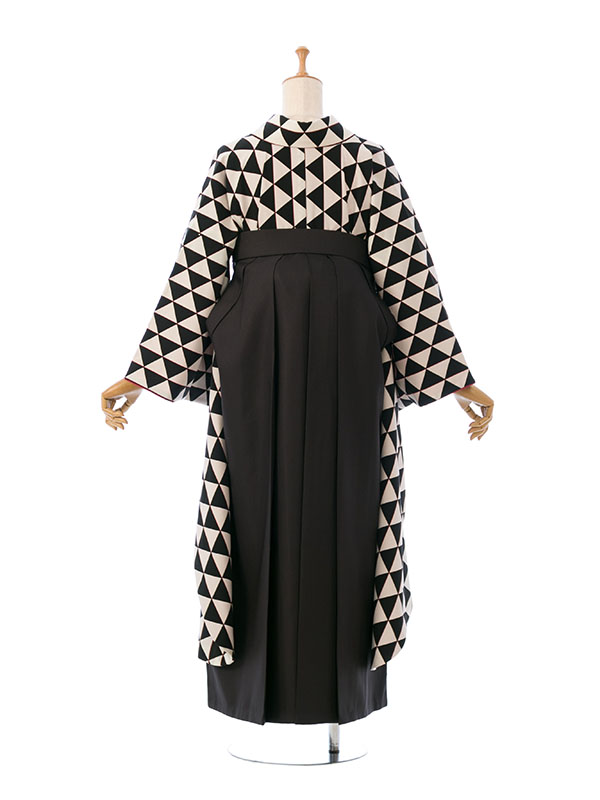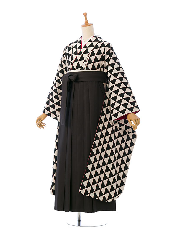 ■着物:白/黒地 ウロコ文様■袴:黒袴 95cm