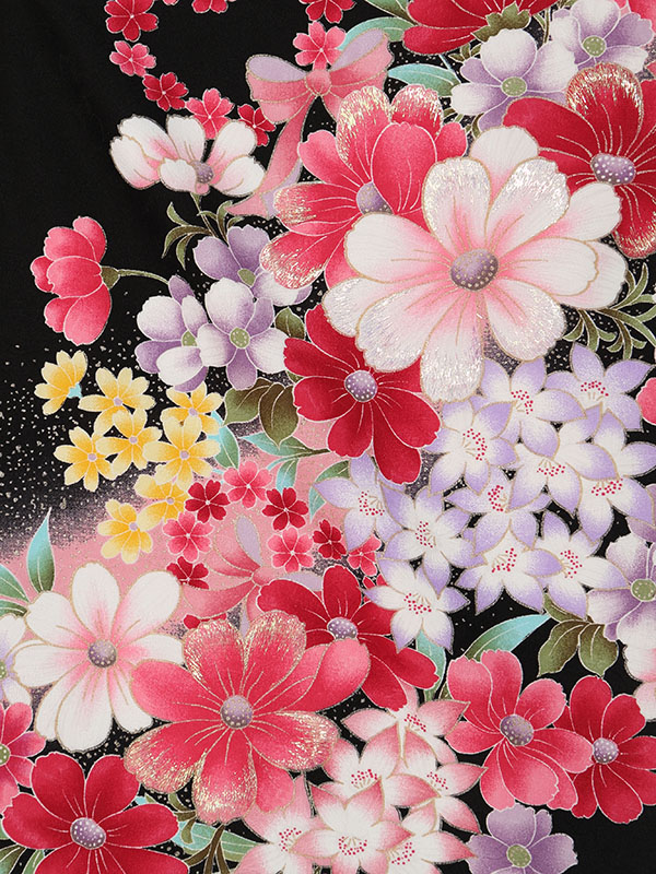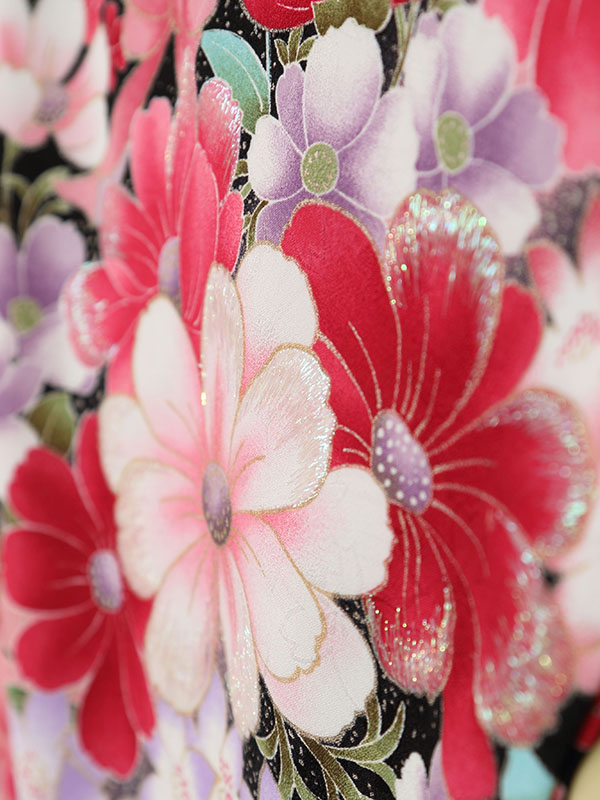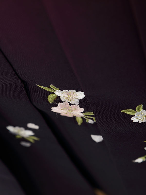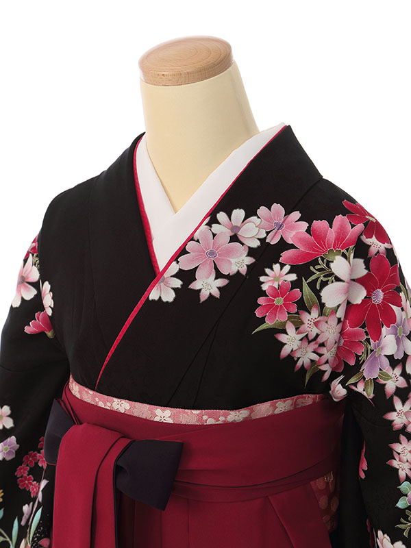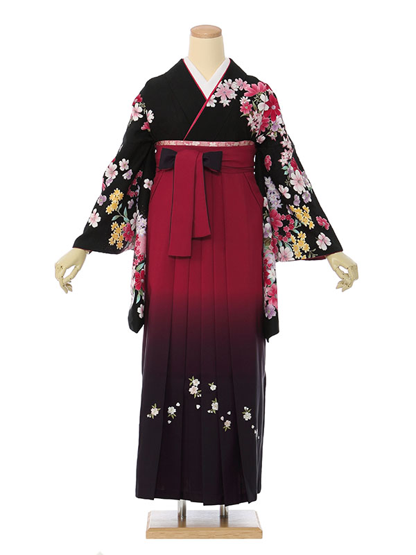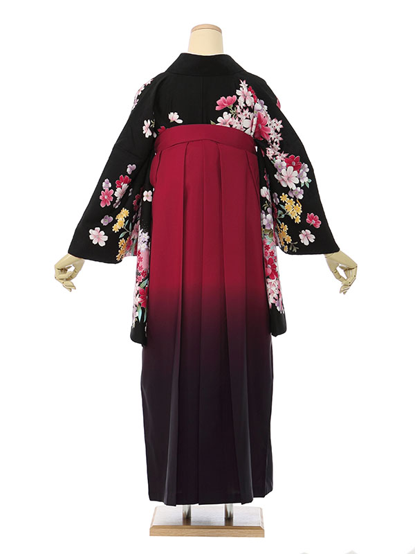 ■着物:黒地 四季の花■袴:赤紫地 紫ぼかし袴 桜刺繍 2.5