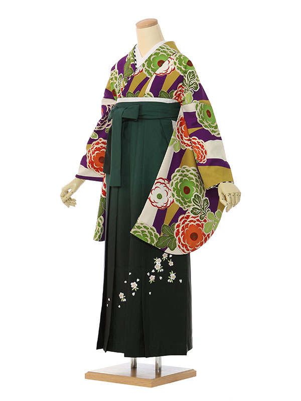 着物:【JAPAN STYLE×中村里砂】ブランド からし/茶 菊 袴:グリーンぼかし地 桜刺繍