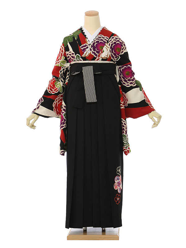 卒業袴|黒系|R1343A|対応身長:153-158cm|サイズ:7-13号|JAPAN STYLE