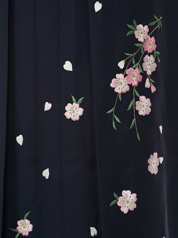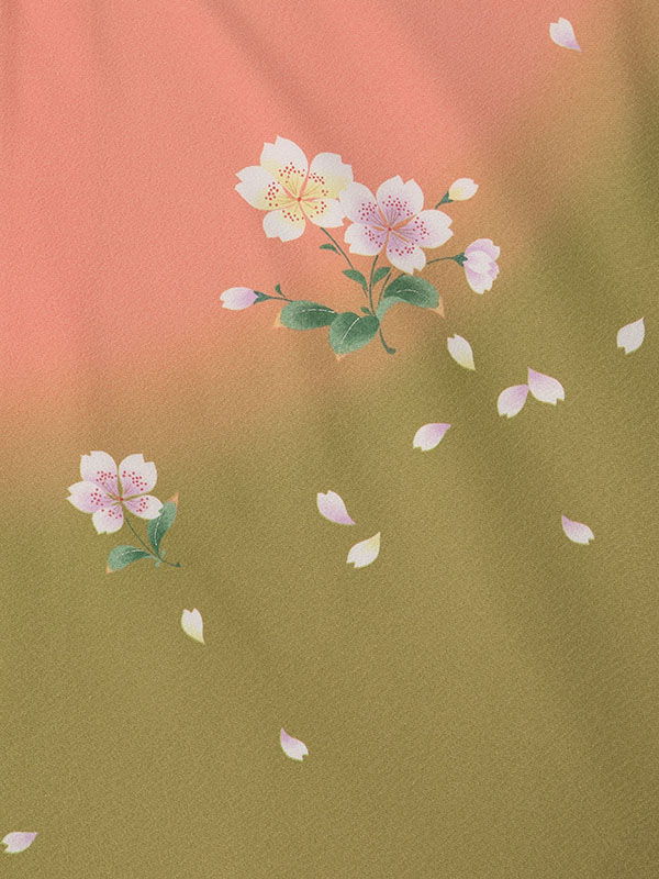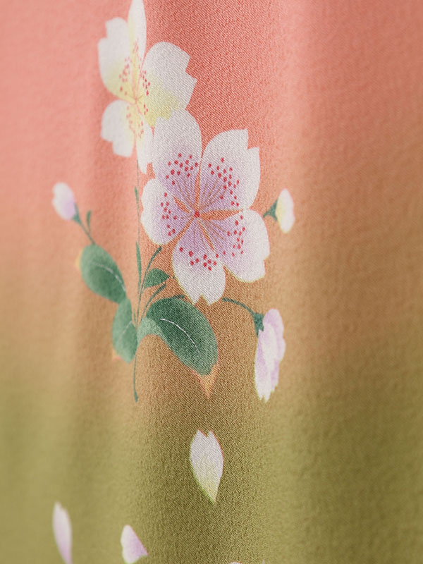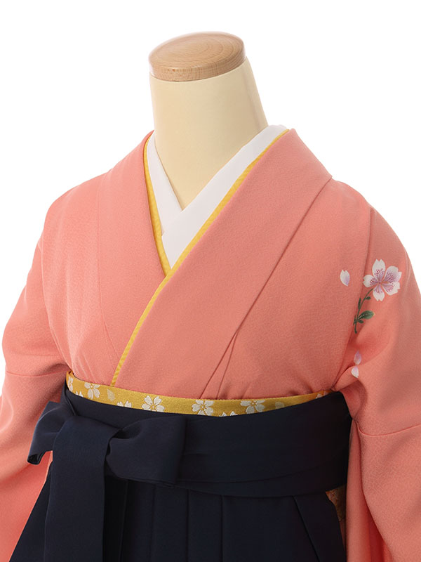 着物:サーモンピンク地 袖ぼかし 桜 袴:紺地 桜刺繍