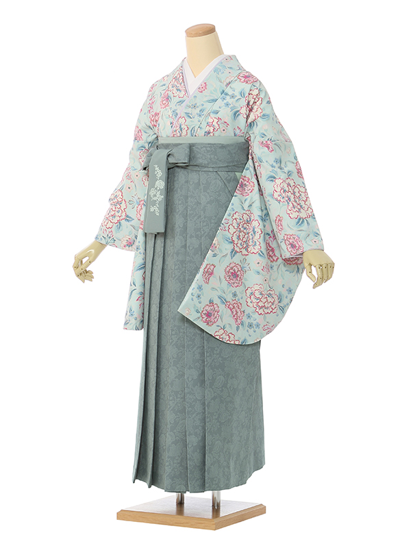 【着物色/柄】着物:ミント地 牡丹 カーネーション GN-2 袴:ミント 花更紗 GH-2