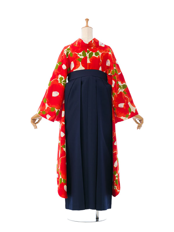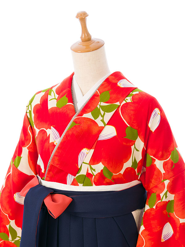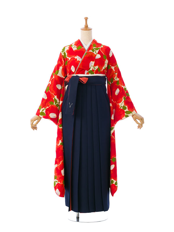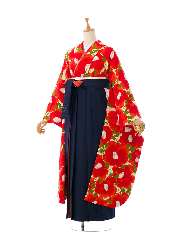 振袖袴|オレンジ系|椿|0S0008 H|対応身長:158-163cm|サイズ:7-13号