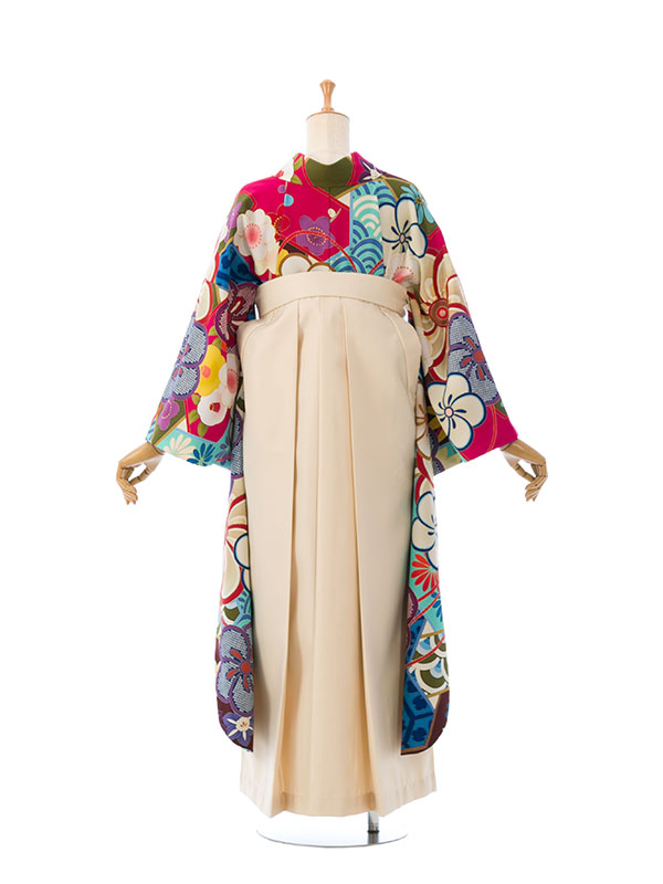 1.半巾帯/2.長襦袢(白半衿付き)/3.肌着(ワンピースタイプ)/4.草履/5.腰ひも 4本/6.和装ベルト/7.帯板/8.伊逹締め 2枚/9.重ね衿/10.衿芯/11.足袋(新品プレゼント)12.振袖/13.袴★ご注意ください※画像の小物類は、撮影用の為お付けする物と異なります。※半巾帯・重ね衿・草履などの小物類は、e-きものレンタルスタッフがコーディネートさせていただきます。※重ね衿は、着物に付属している場合がございます。★お母さま 訪問着はこちら♪★髪飾りなどの小物販売品は、こちらからどうぞ♪