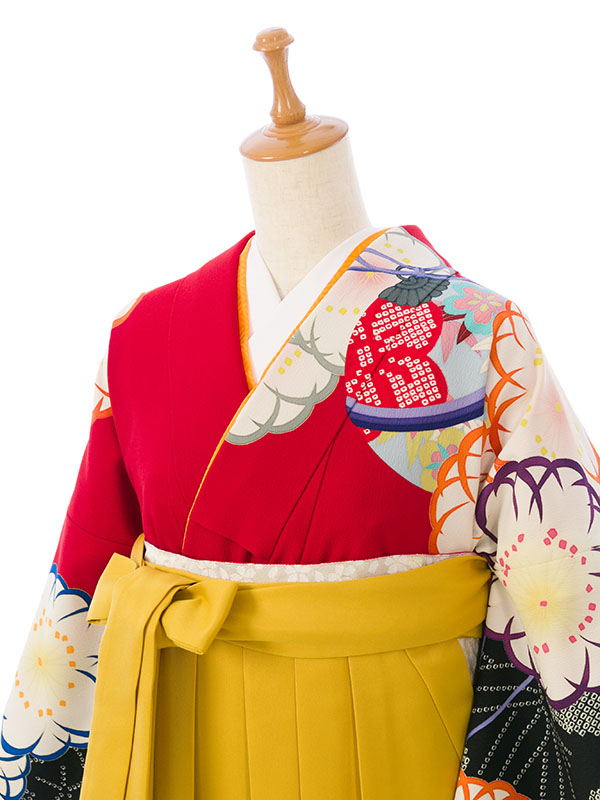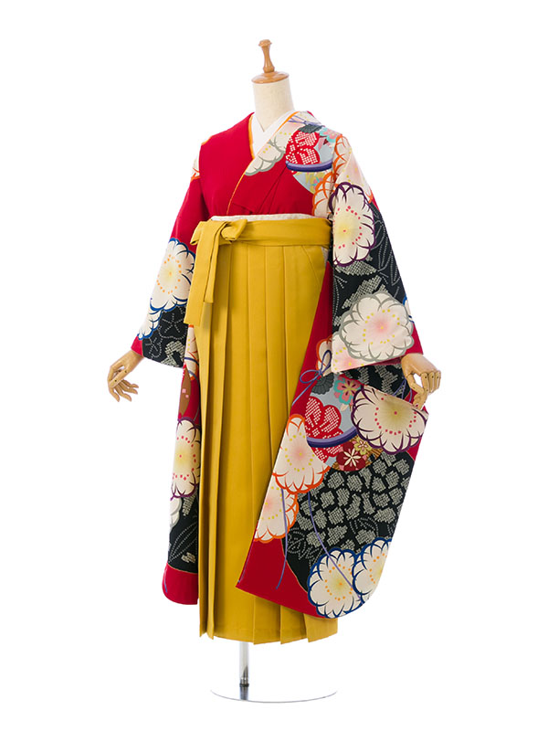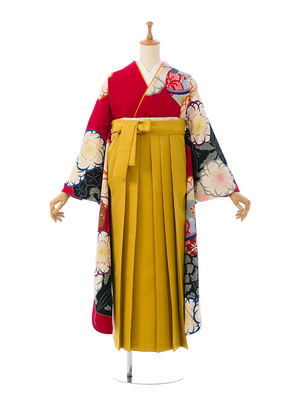 ■着物:赤 梅 鞠■袴:からし袴 91cm